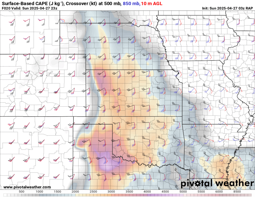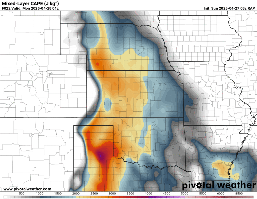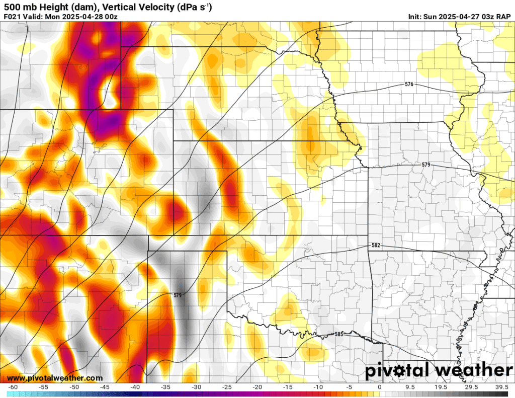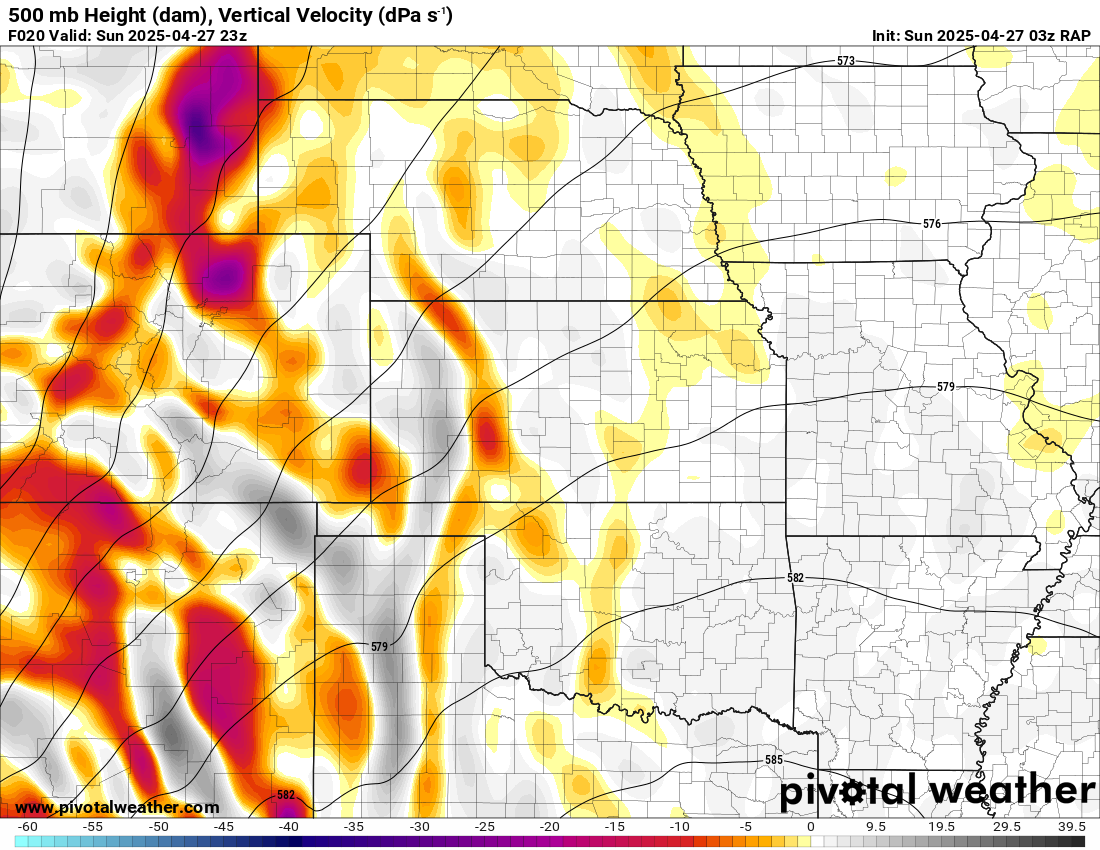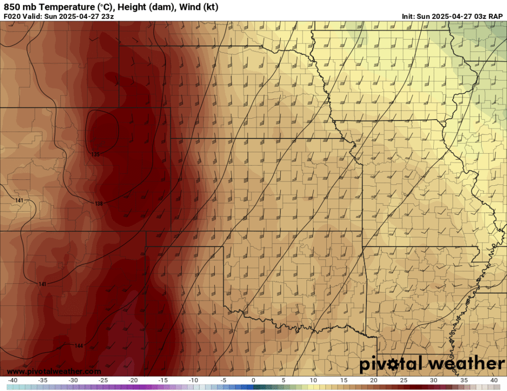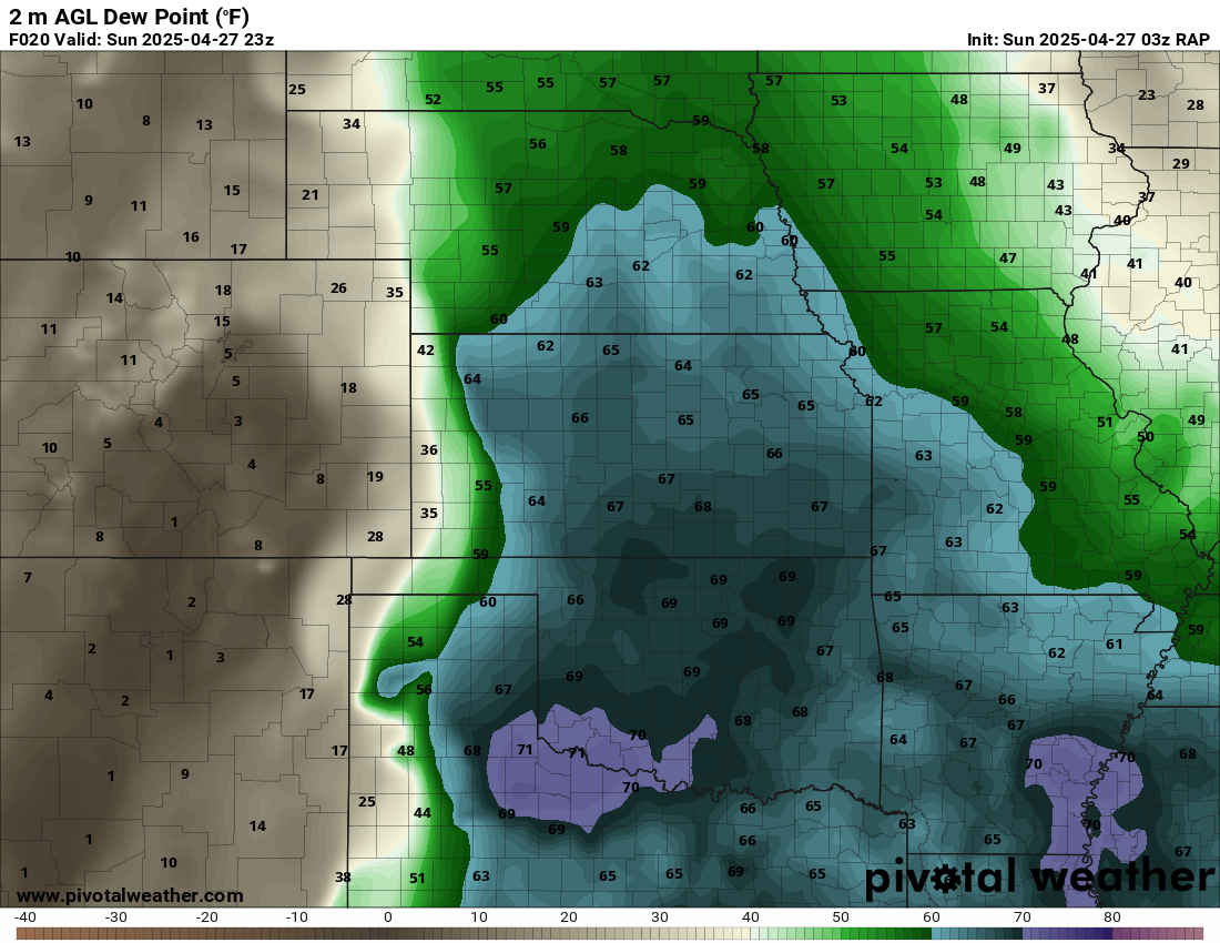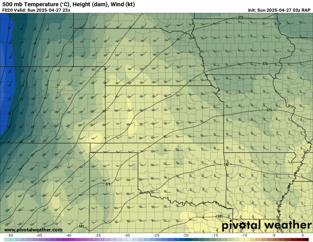 I was specifically impressed with temperatures at 700mb in the RAP runs, showing an area along the dryline in Western Kansas and Nebraska that would be sufficiently cool for convective initiation, or so I thought.