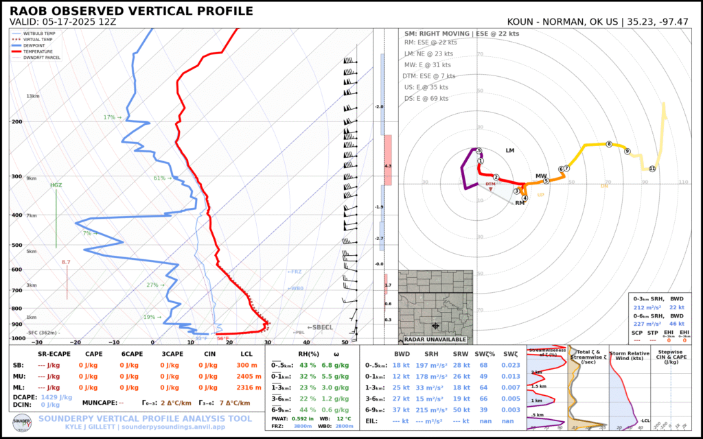 KTLX VAD 2025-05-17 2050Z/3:50 pm CDT