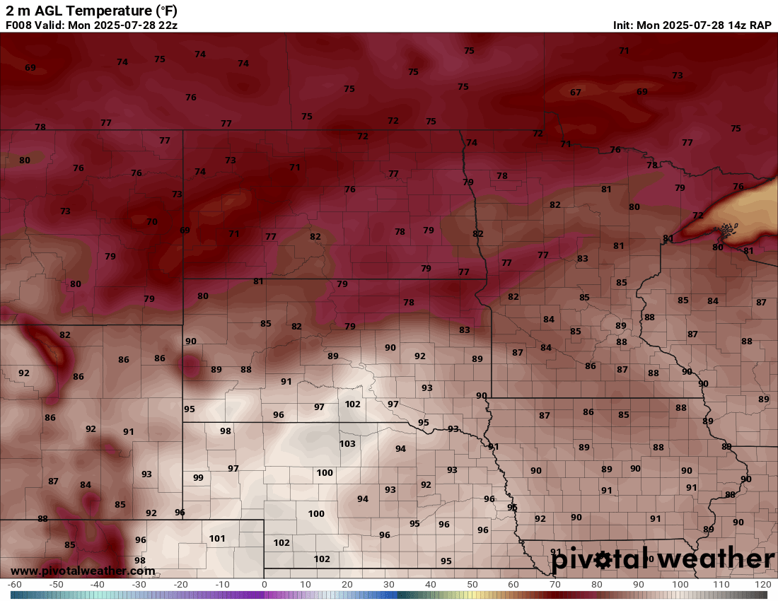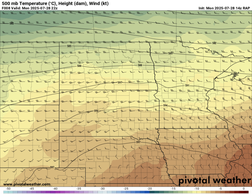 Between visiting the National Monument and work obligations, I became distracted. When I started moving west, the idea was to go to the Huron area or a little further west and/or north. Convective Initiation further southwest put me out of position big time. To compound the issue, I headed west out of Pipestone and continued through Madison and then tried to go through Salem. Road construction including a 15 minute wait for a pilot car and another long detour around Salem and back to I-90 cost me a lot of time.