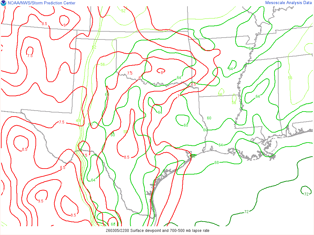 Evening soundings on March 4th showed reasonably good moisture at BRO/CRP/LCH/SHV/FWD/DRT stations and very steep lapse rates at MAF/EPZ/ABQ/AMA. The devil would be in the details as these ingredients mix over the great plains on the 5th