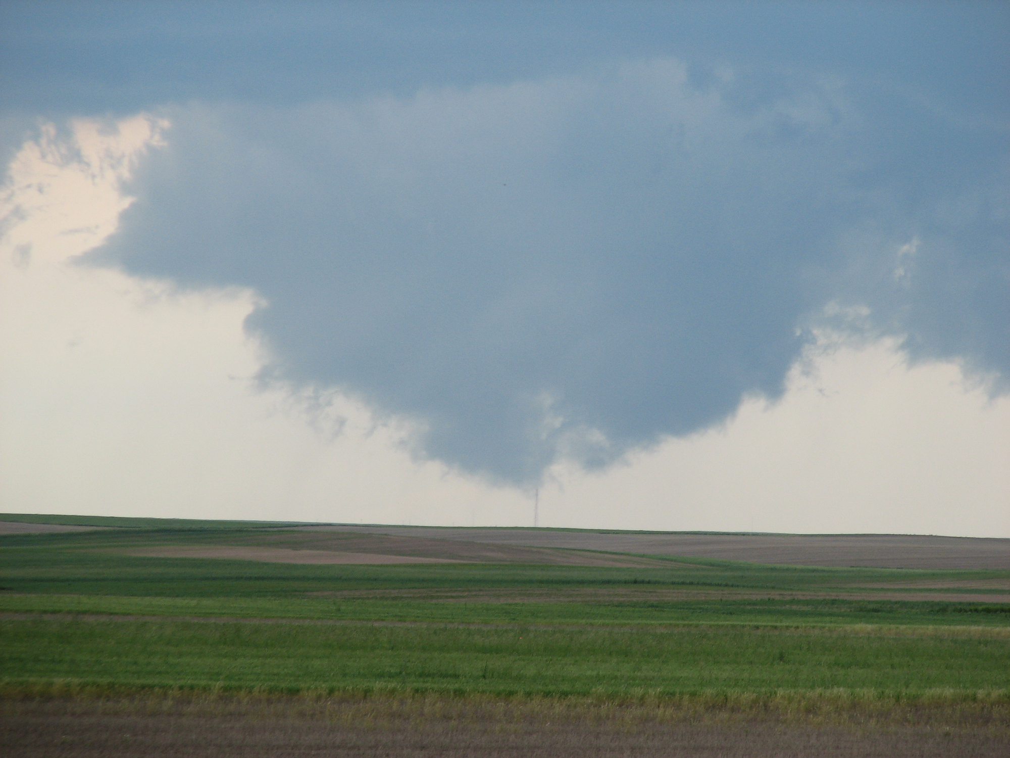 After that, we returned back to the cell and came into the rear area of the cell. We watched some rotation on the cell from far, and then approached from Dalton, NE. Scott and I stopped a bit up the road and observed the clouds – It looked turbulent and much like you’d see in the wake of a large ship – Clouds spinning and going every which way. It was very impressive in person, not so much on video.