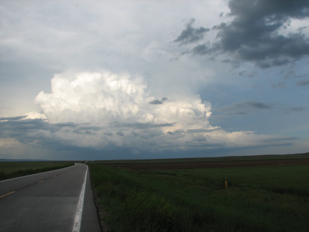 After the tornado lifted, we observed the cell and then decided to drive a bit closer. We got into a good position for the supercell to go north of us, while we observed beautiful structure and more cells popping up. None of them really ended up going, though, and we watched the cell move from northwest to northeast of us, dropping another beautiful funnel fairly close to us. That one didn’t manage to touch down, though.