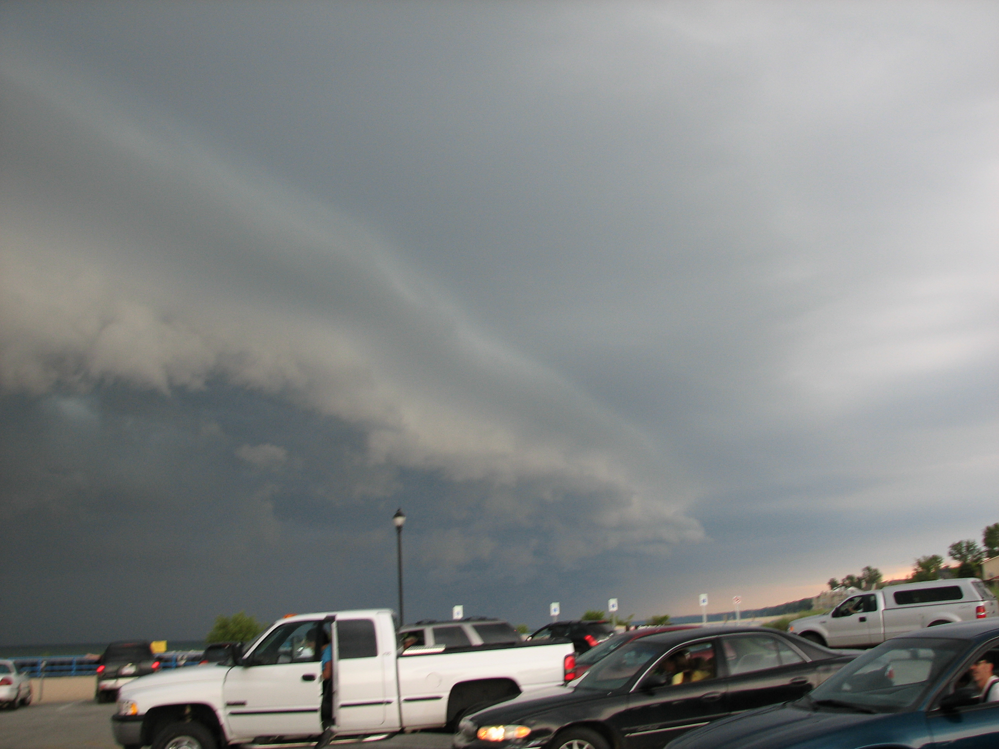 I flew up I-94 and I-196 to South Haven, where I parked and got some AMAZING shelf cloud pictures as the storm came ashore. The people playing volleyball on the beach continued to play as this was all going on, with multiple cloud to ground strikes over the water.
