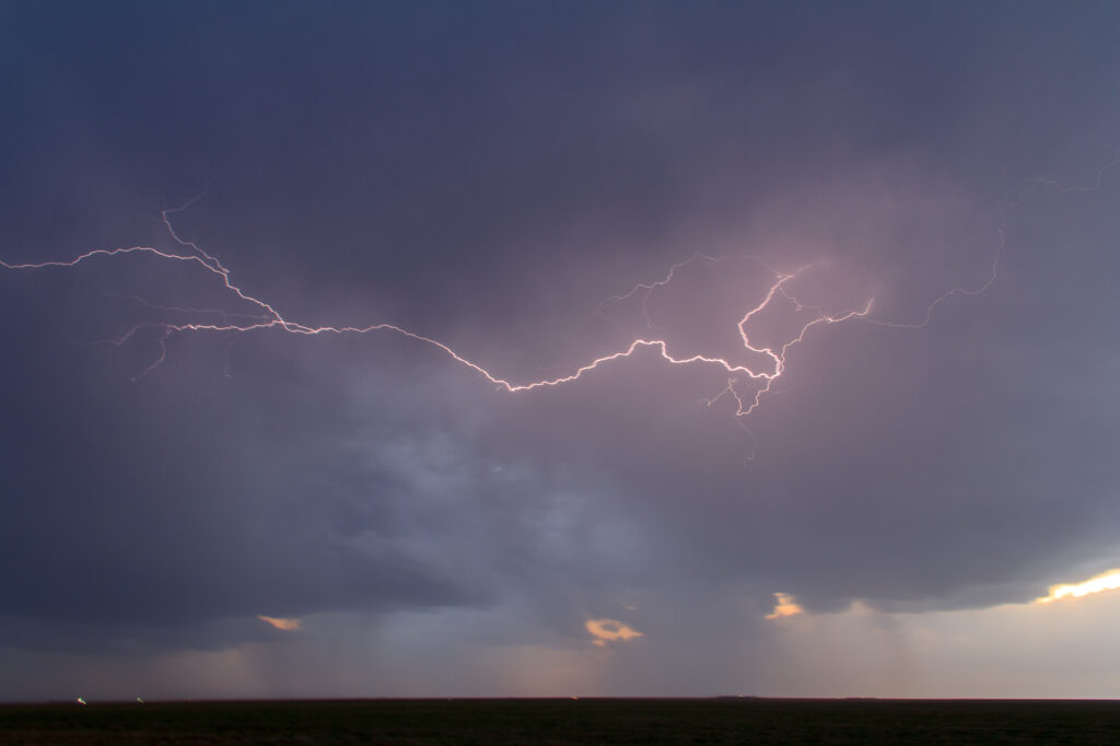 I ended up heading north, just in case. I made it north of Perryton, TX before turning around and heading Southwest to go after the less-than-impressive storm going up north of Amarillo. I intercepted those storms (which had become multicellular) west of Spearman near Gruver at sunset.