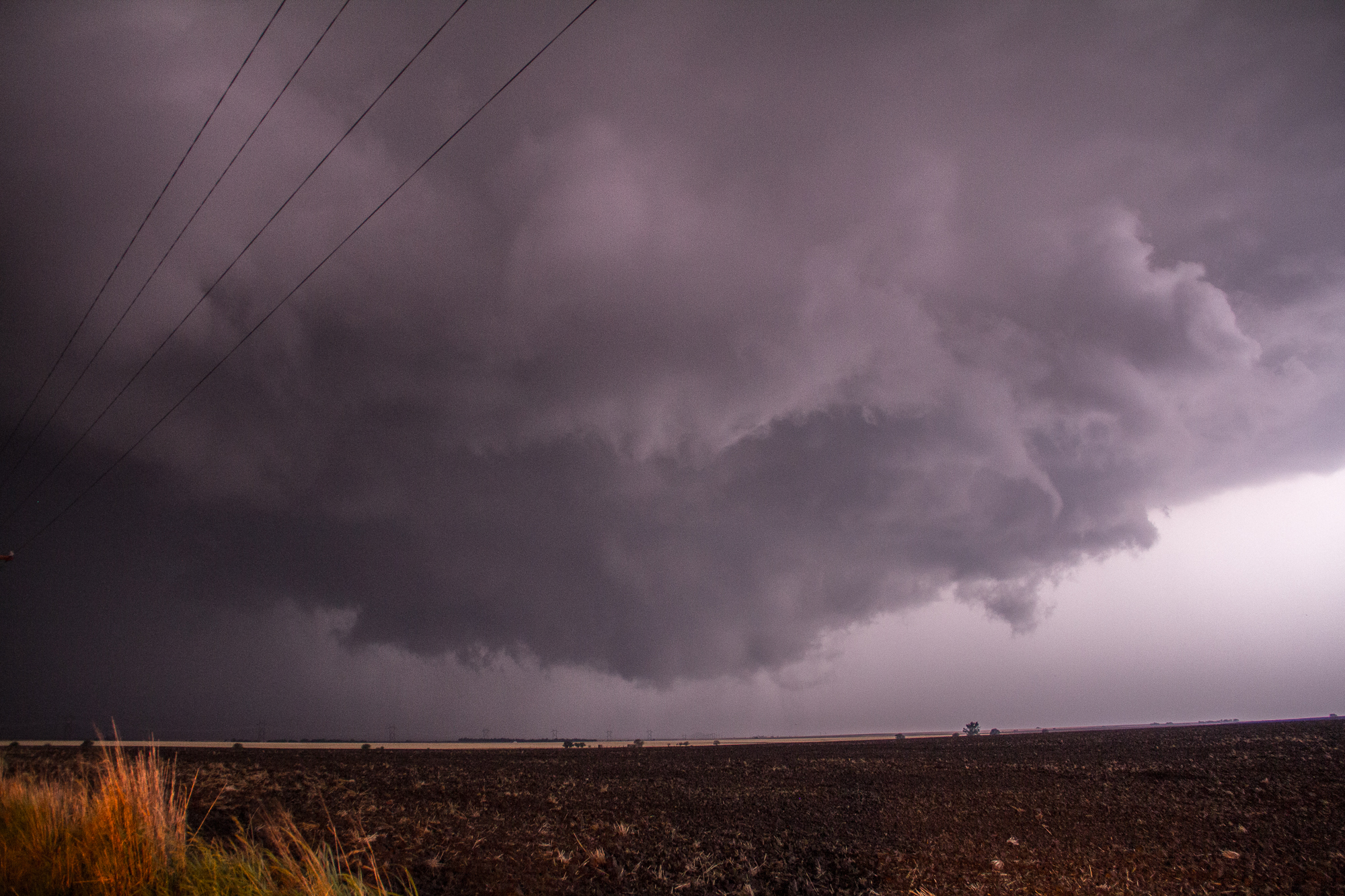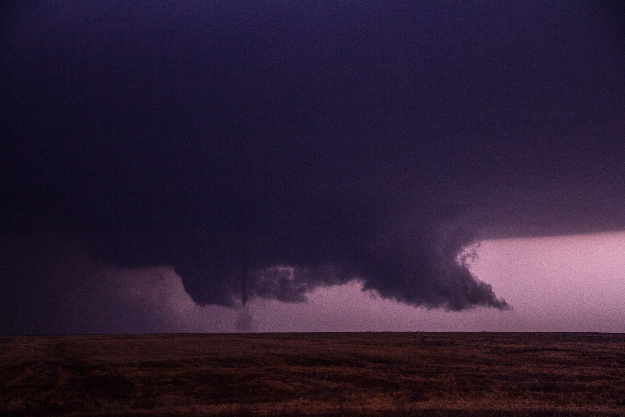 We sat just east of the town of Bunker Hill for quite awhile and eventually made hotel reservations in Dodge City and captured the sunset. It was about sunset when other chasers started reporting a tornado south of Russell so we decided to head that way.