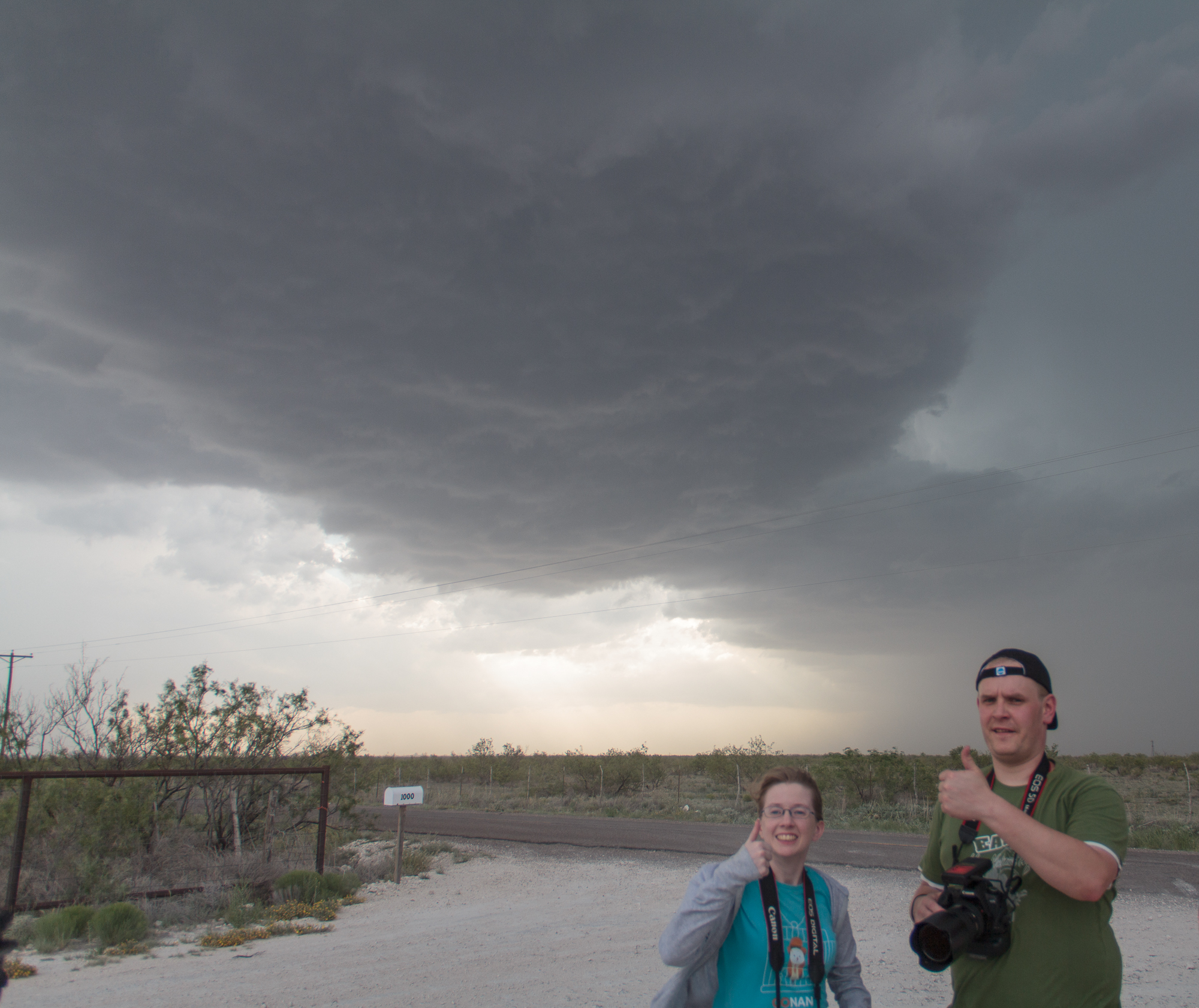 There was two storms, and we were sandwiched between them as we got down to near Jal. Both looked like they had potential, and we ended up sticking to the west storm. Unfortunately nothing happened with that one, but the TIV crew did report a tornado with the one to the east near Andrews, TX.