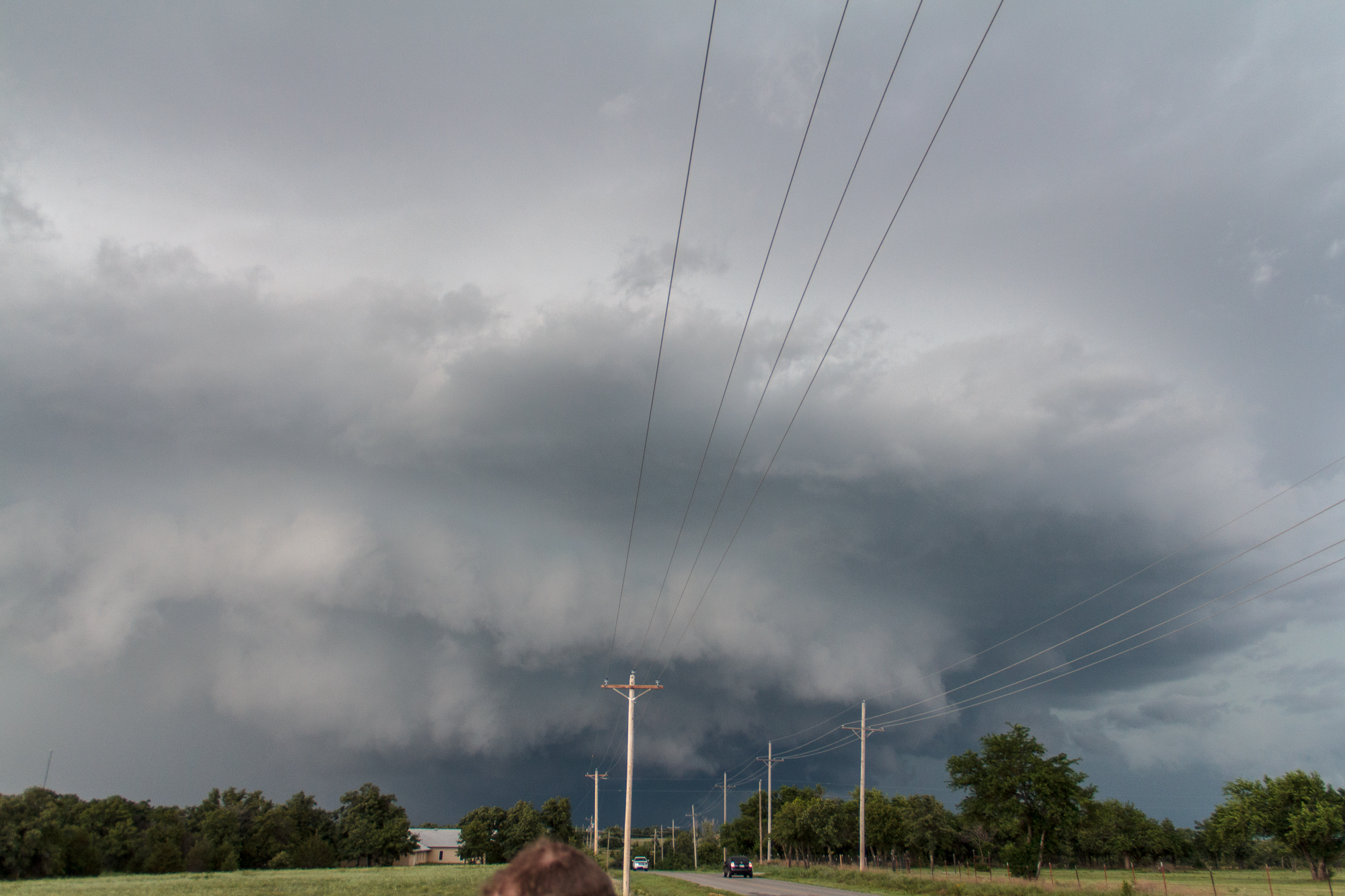 When I saw storms firing along the dry line, especially near Chickasha, I really thought this day would be huge. Stephen, Jari and I hurried out (after sleeping in late) towards Chickasha and west. The initial storm we were on kept trying to get organized and had a huge wall cloud. The storm seemingly was wrapping up and moving slowly to the east.