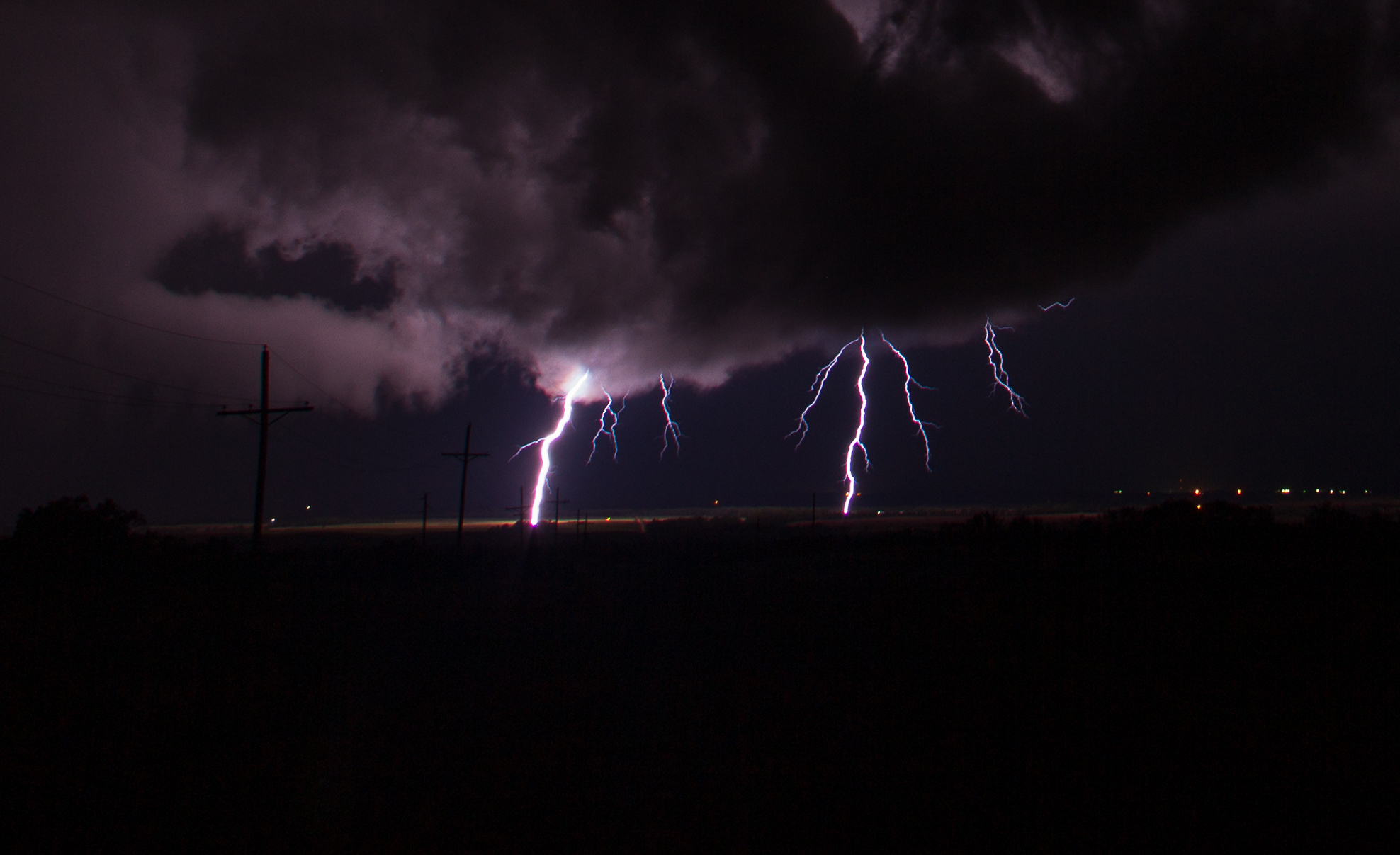 So I headed back south towards Pampa and then to I-40 where I was able to get in front of the line of storms. The sun was going down so we opted to try some lightning photos.