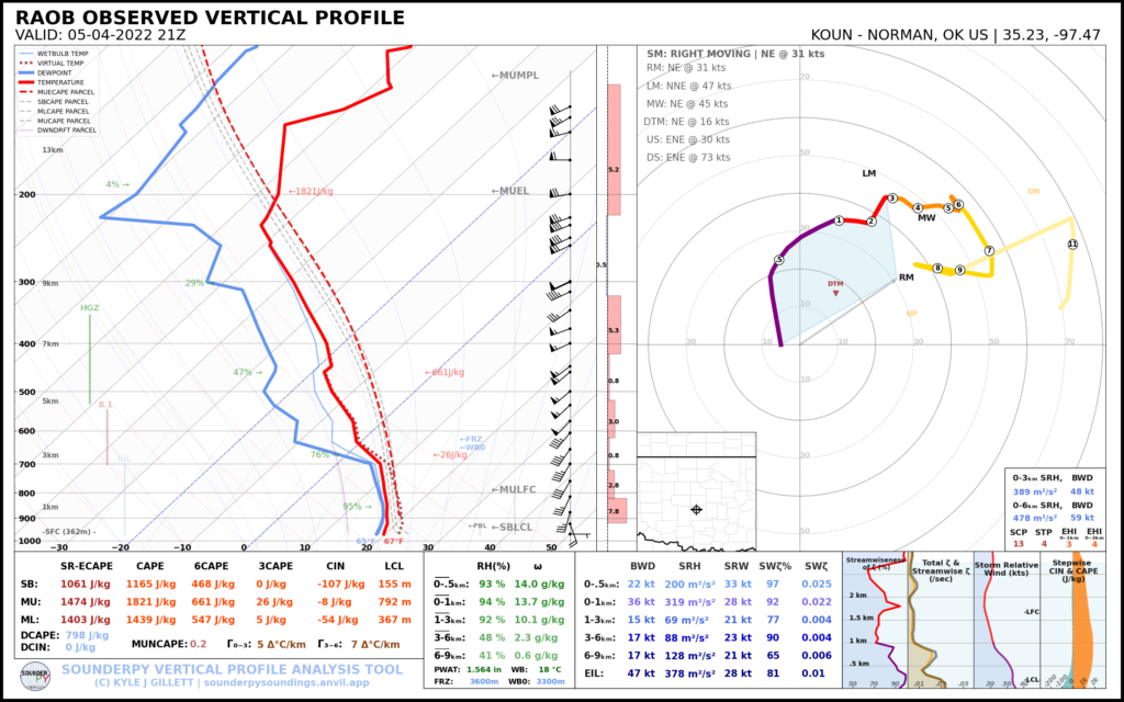 With the ingredients present in Central Oklahoma, all we would need is discrete supercells. The possibility was very real, and the later runs of the HRRR seemed to latch onto the idea of storms along the warm front in Central Oklahoma.