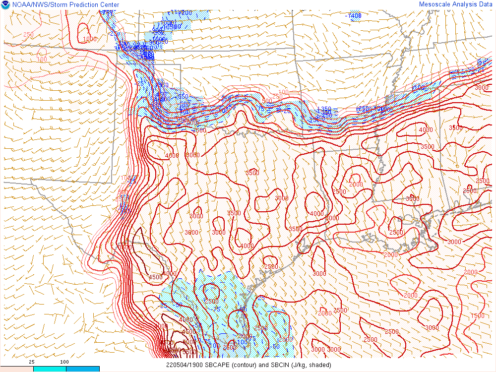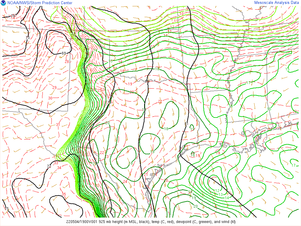 A complex forecast, but the setup screamed central Oklahoma to me. A warm front was moving its way northward out of north Texas. Oklahoma had a very moist and increasingly unstable airmass in place. Most places south of I-40 saw some sun.