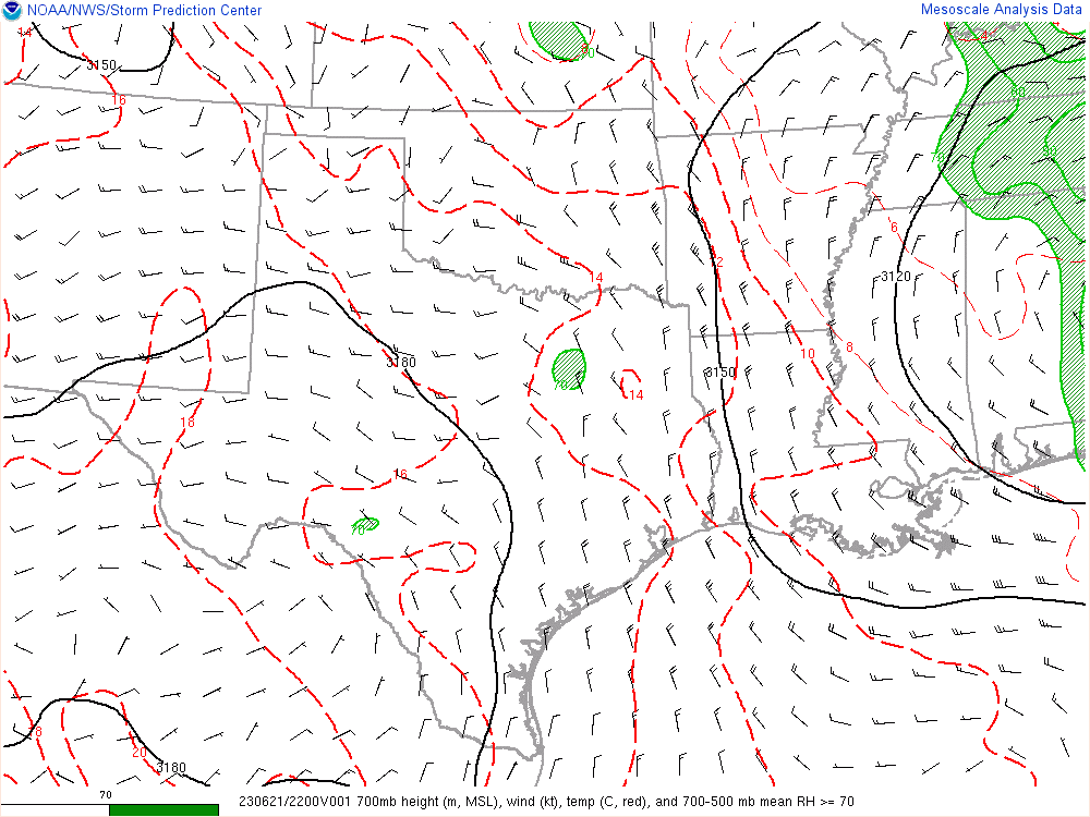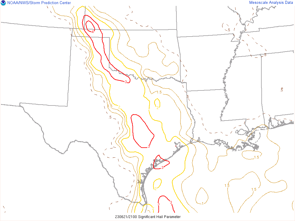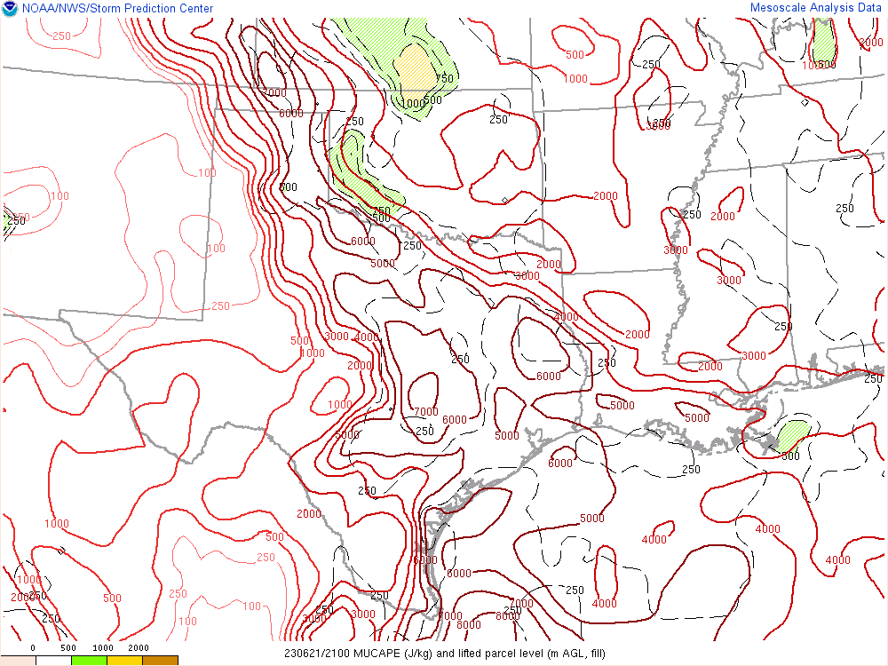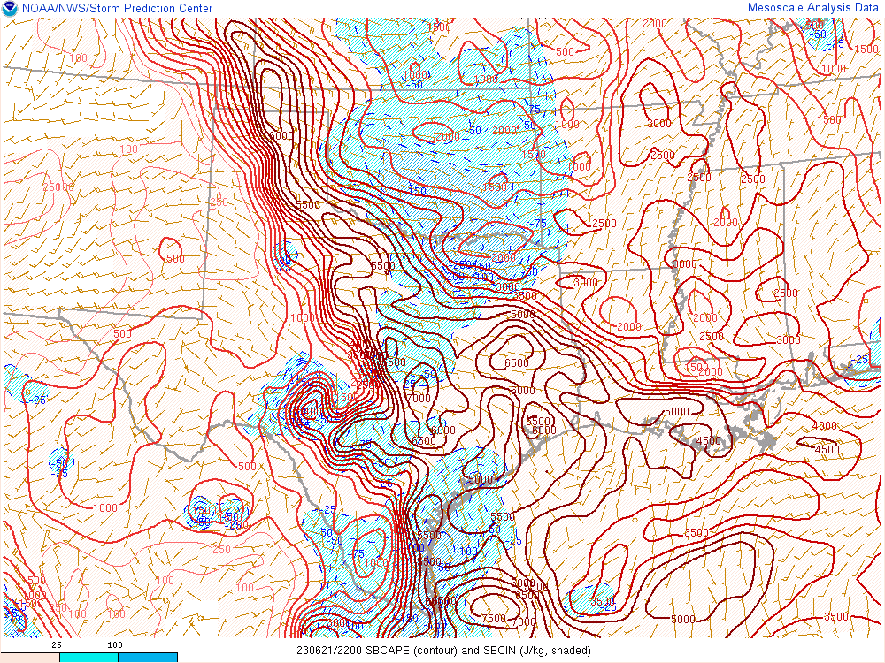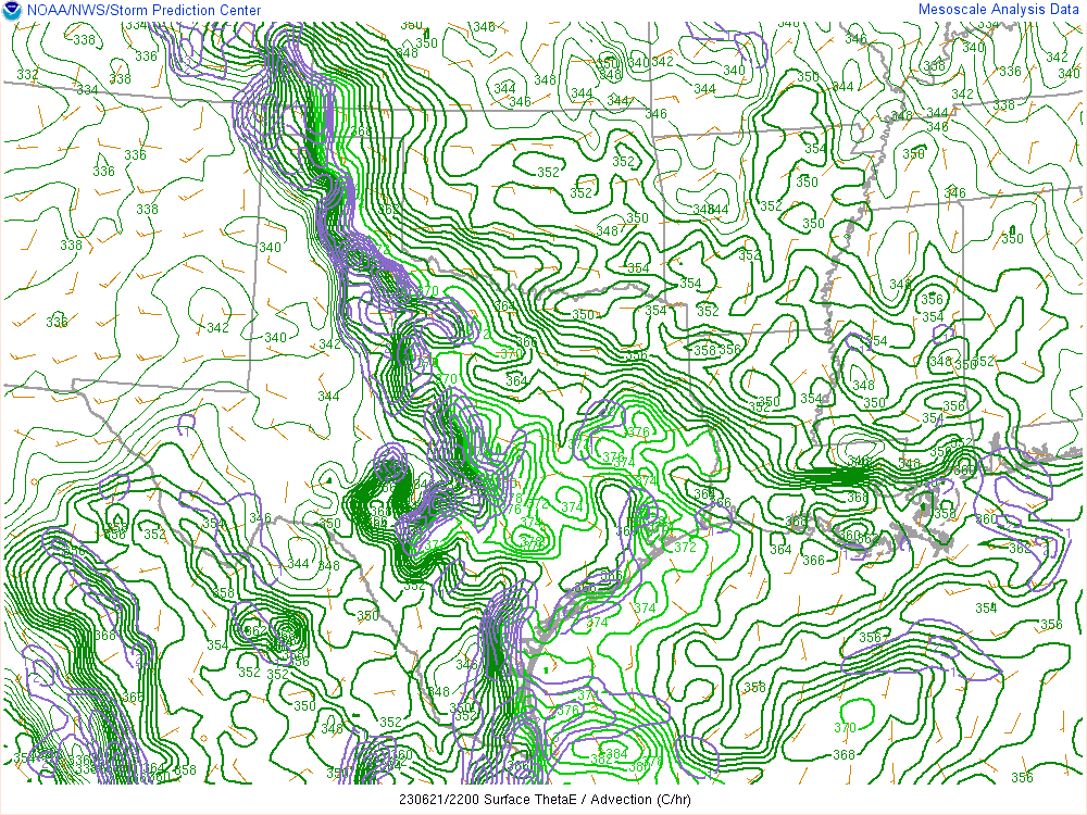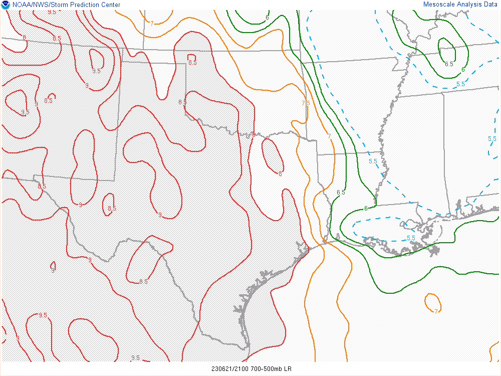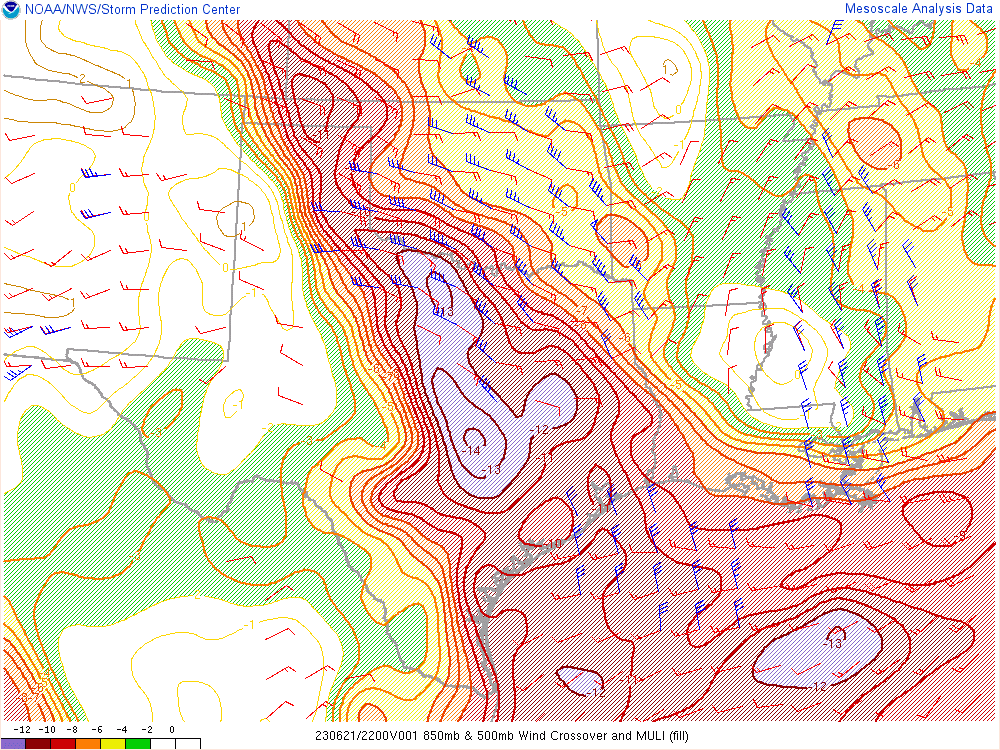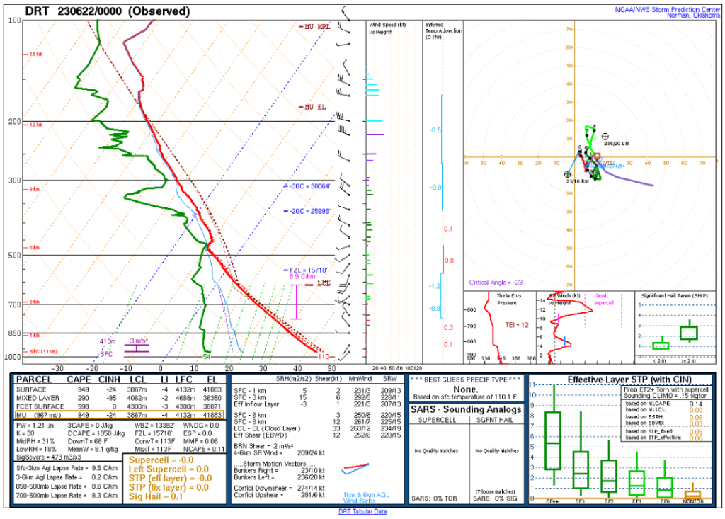 Here’s the 00Z soundings for June 22nd. As you can see, lapse rates were incredibly steep with deep moisture. A 73º degree dewpoint at Amarillo is pretty rare.