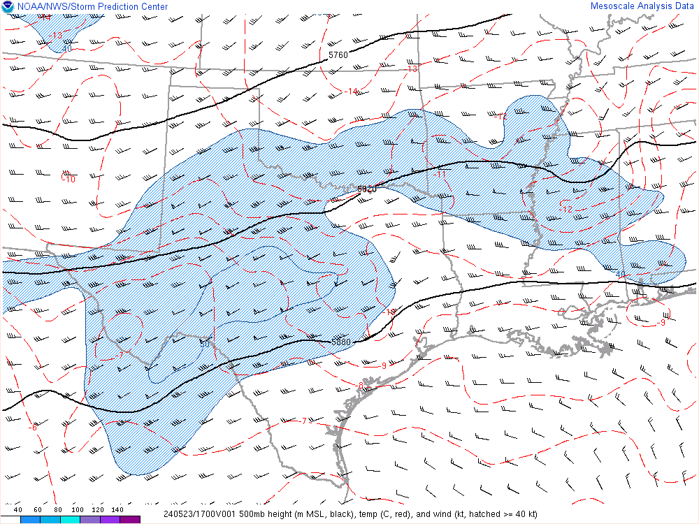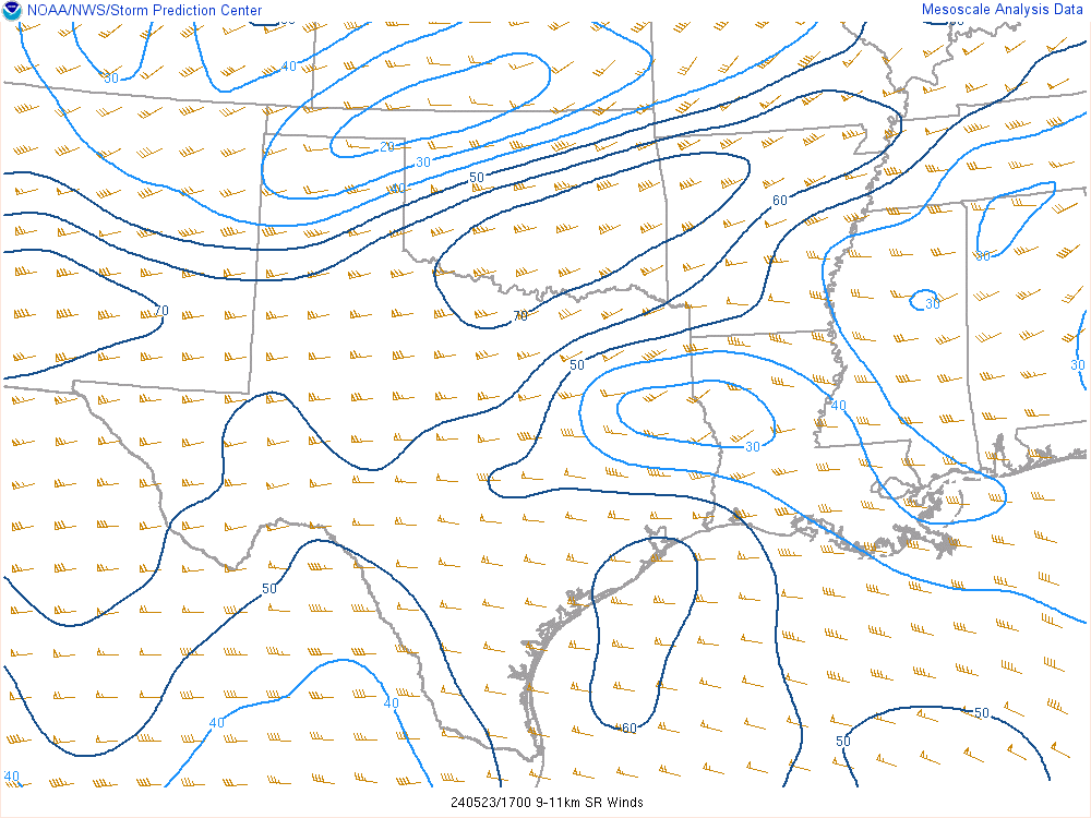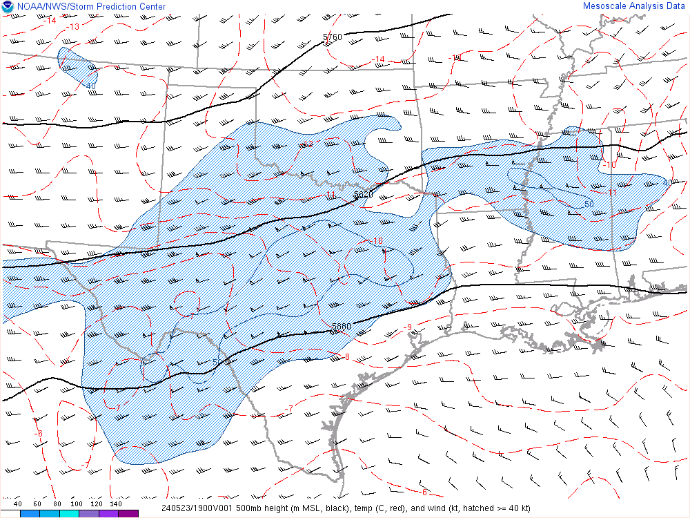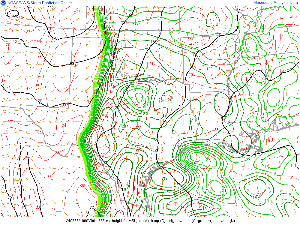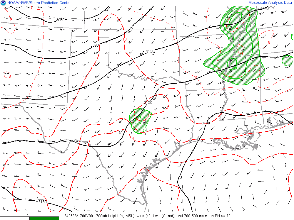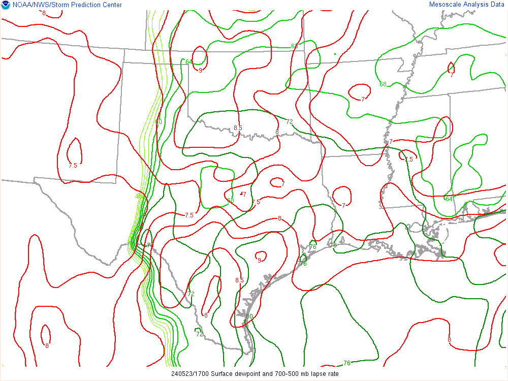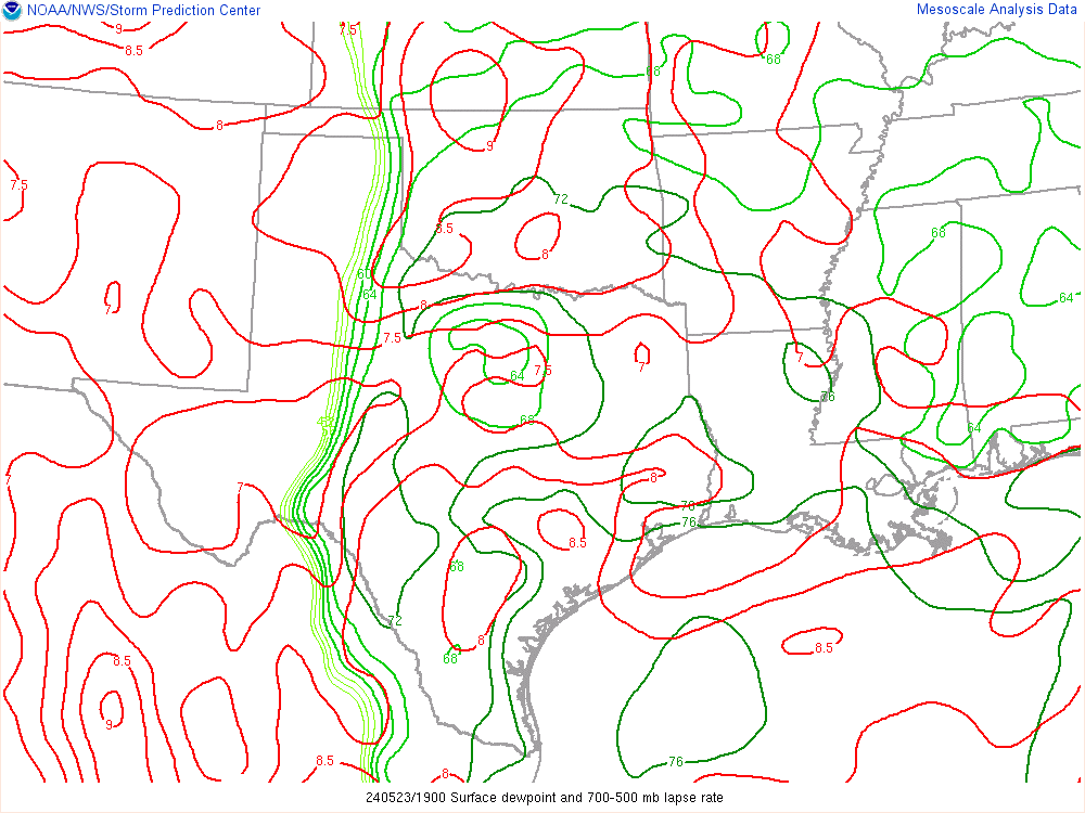 Another 5% day if you believe the SPC. I knew better. We had a good dryline, 70+ degree dewpoints and multiple boundaries in play. This was a day where my surface hand analysis was king. I was clued into the area of higher dewpoints that had snuck into southwestern Oklahoma. With multiple boundaries hanging out, and a bulge in the dryline, it appeared Western North Texas into Southwestern Oklahoma was the place to be.