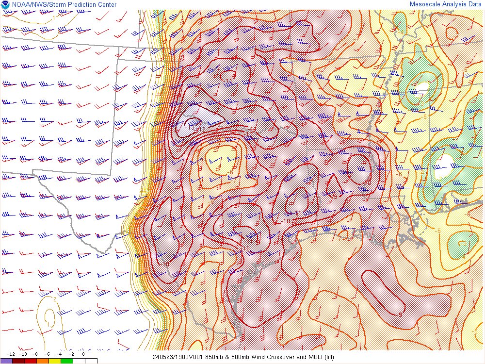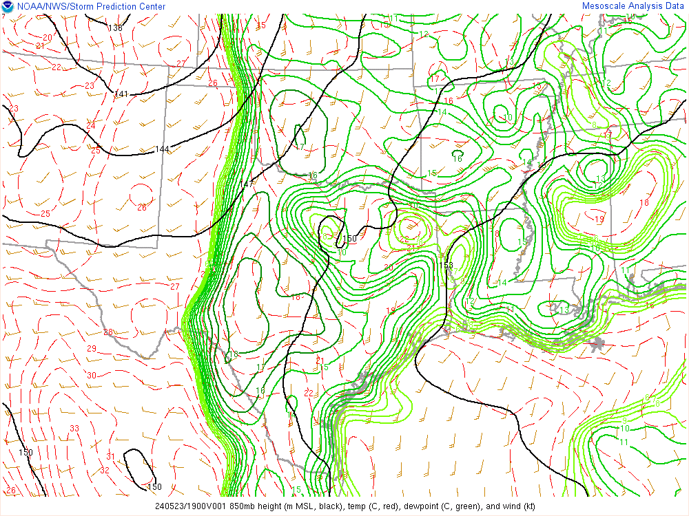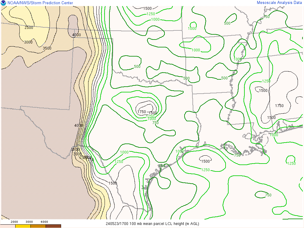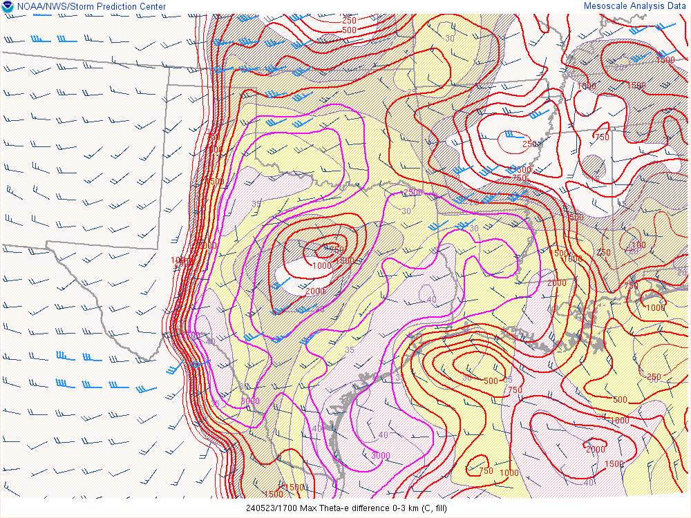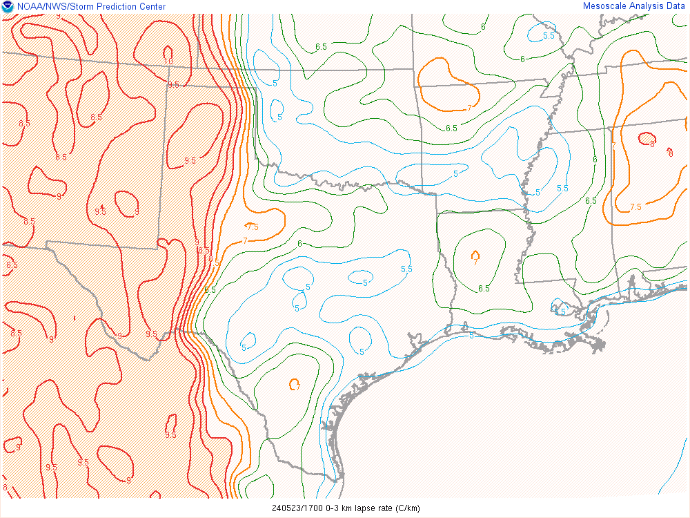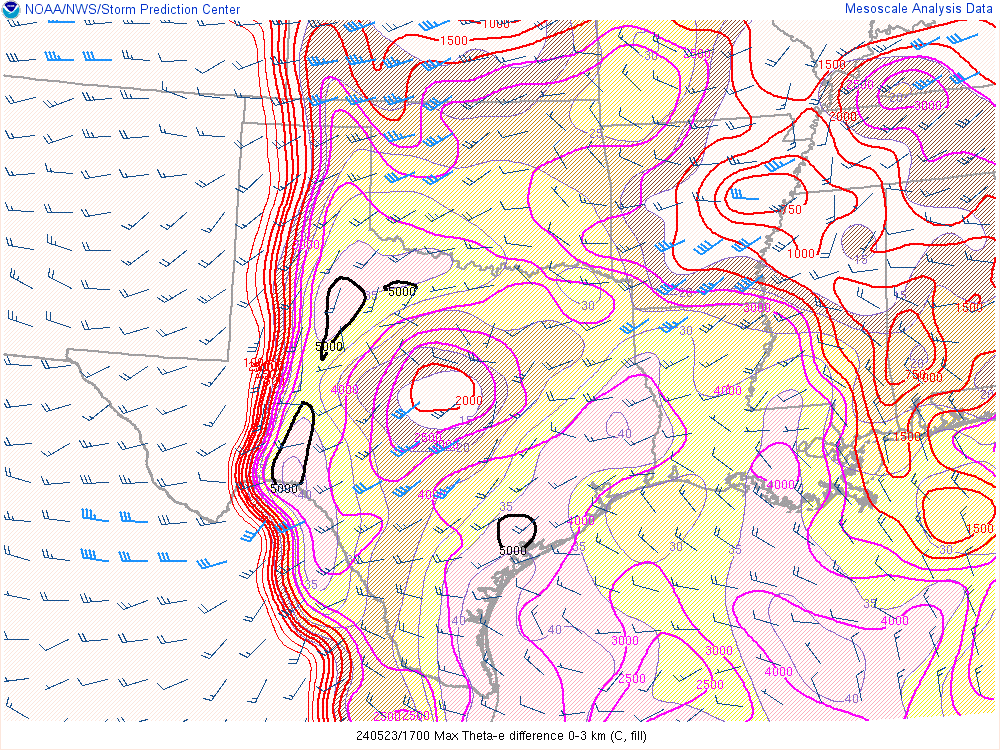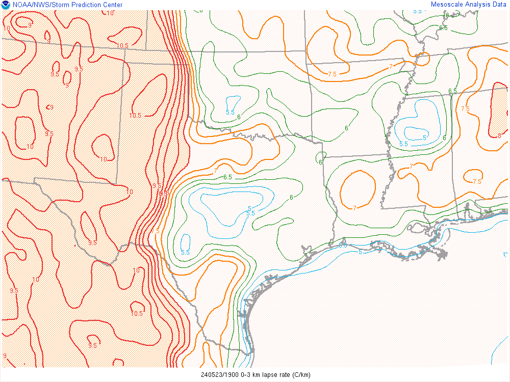Another 5% day if you believe the SPC. I knew better. We had a good dryline, 70+ degree dewpoints and multiple boundaries in play. This was a day where my surface hand analysis was king. I was clued into the area of higher dewpoints that had snuck into southwestern Oklahoma. With multiple boundaries hanging out, and a bulge in the dryline, it appeared Western North Texas into Southwestern Oklahoma was the place to be.