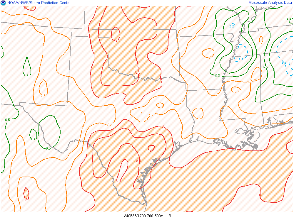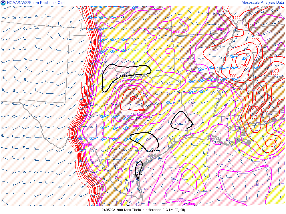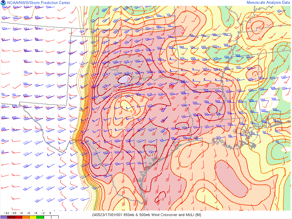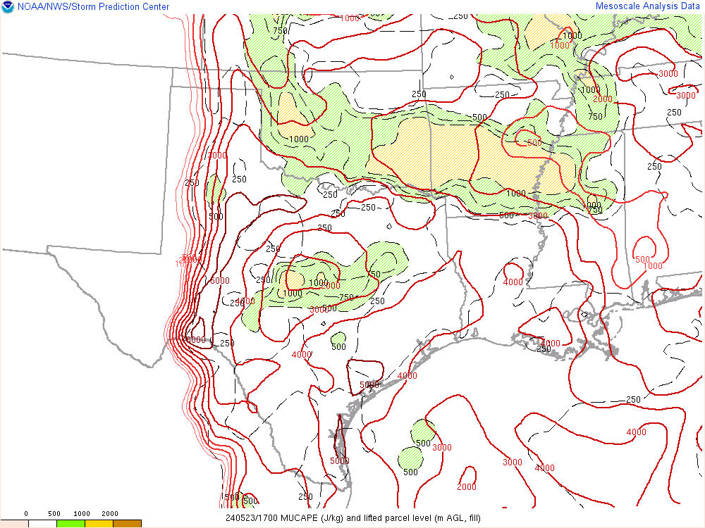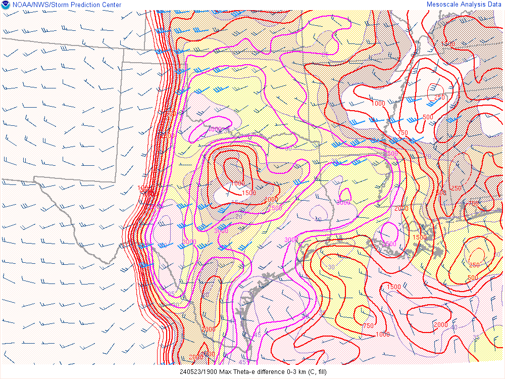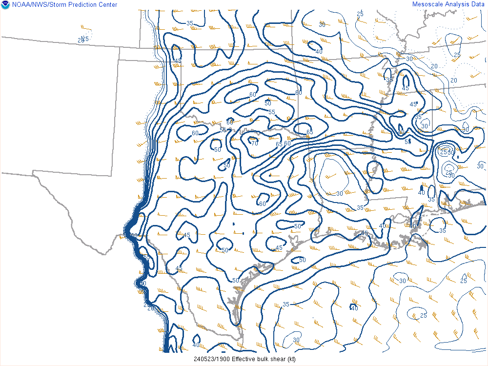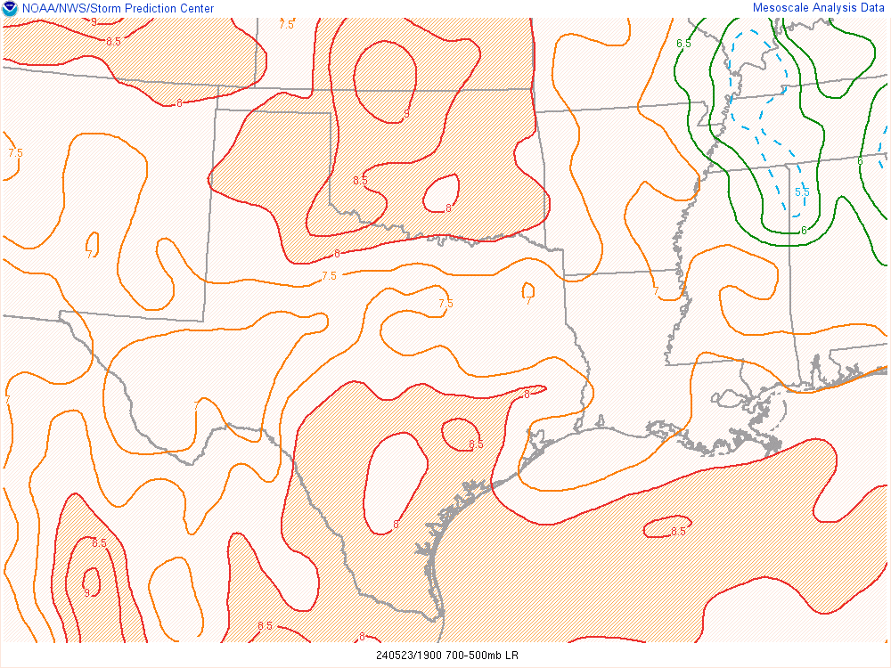 Another 5% day if you believe the SPC. I knew better. We had a good dryline, 70+ degree dewpoints and multiple boundaries in play. This was a day where my surface hand analysis was king. I was clued into the area of higher dewpoints that had snuck into southwestern Oklahoma. With multiple boundaries hanging out, and a bulge in the dryline, it appeared Western North Texas into Southwestern Oklahoma was the place to be.