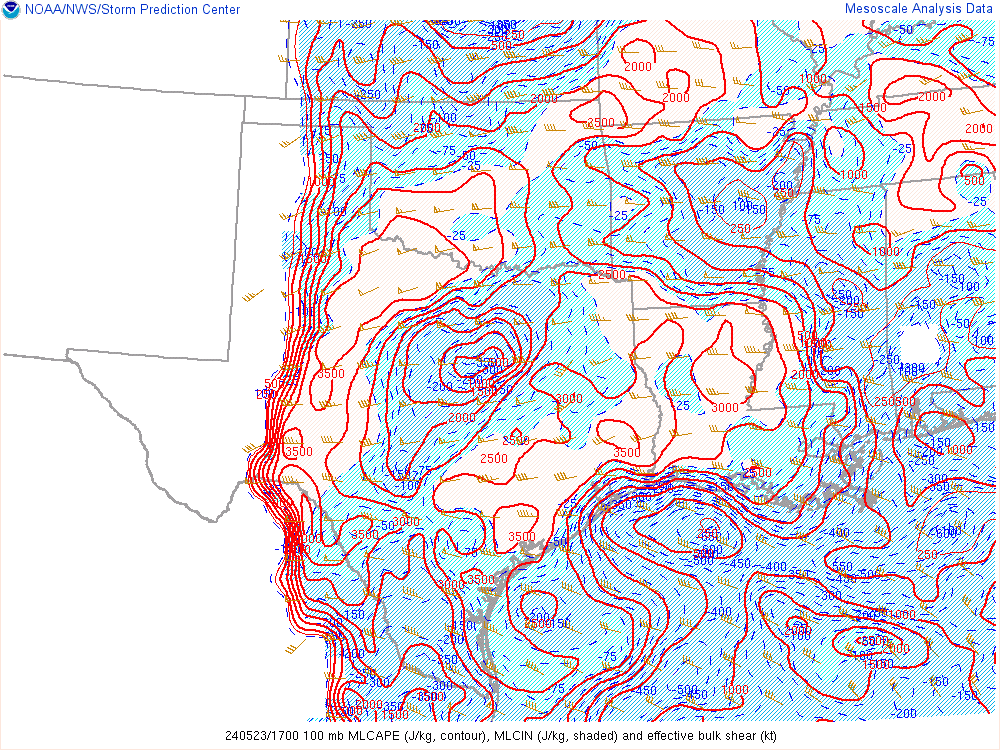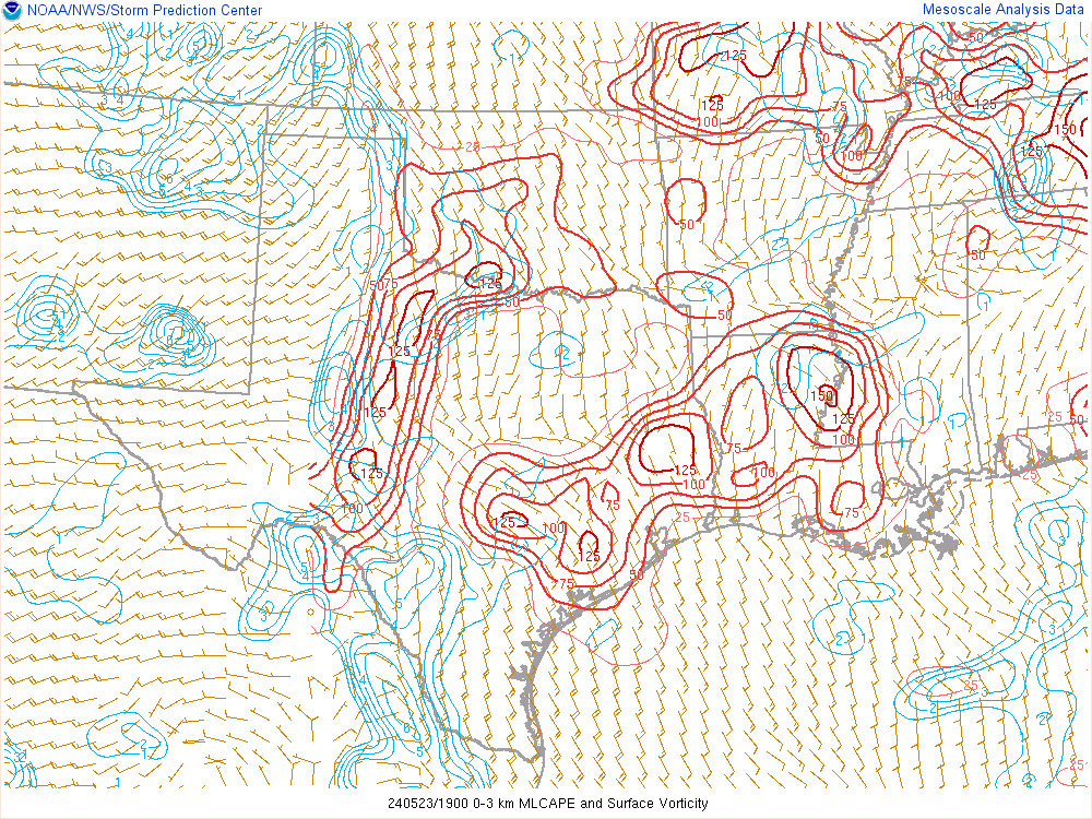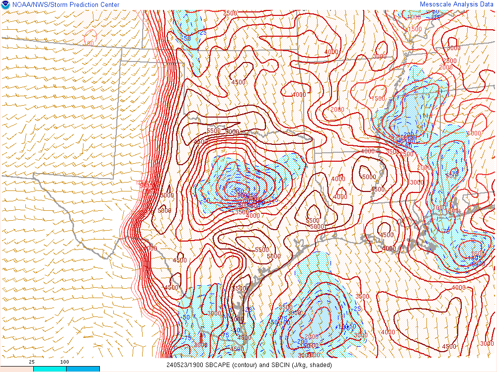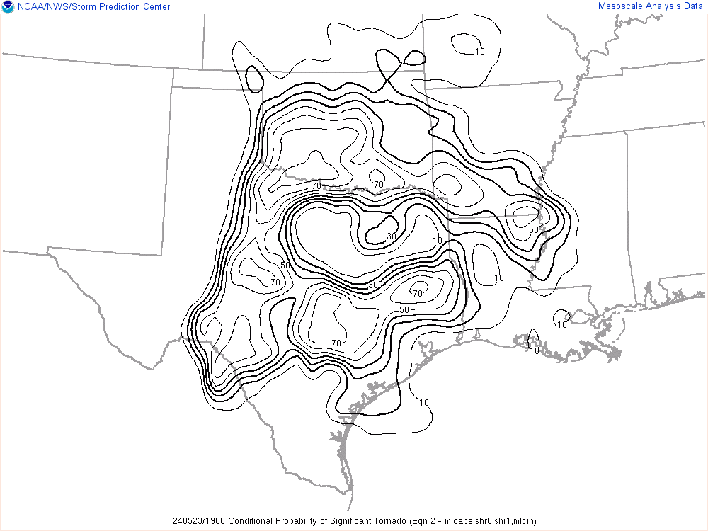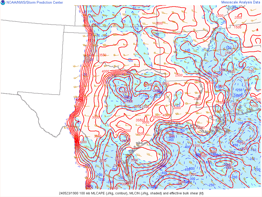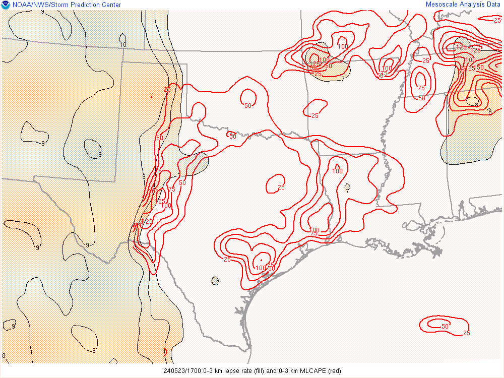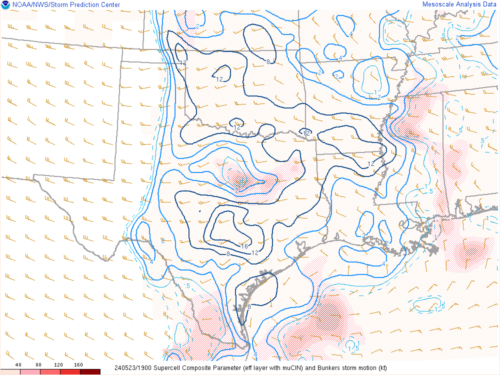 Another 5% day if you believe the SPC. I knew better. We had a good dryline, 70+ degree dewpoints and multiple boundaries in play. This was a day where my surface hand analysis was king. I was clued into the area of higher dewpoints that had snuck into southwestern Oklahoma. With multiple boundaries hanging out, and a bulge in the dryline, it appeared Western North Texas into Southwestern Oklahoma was the place to be.