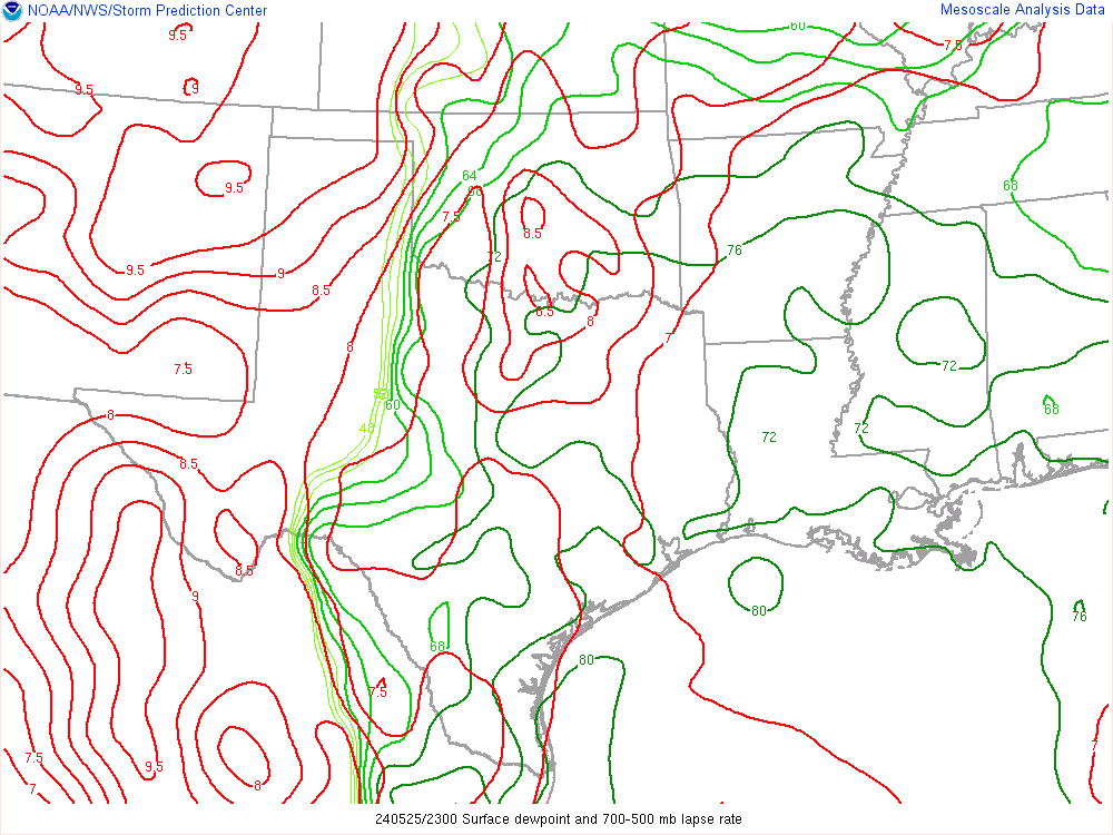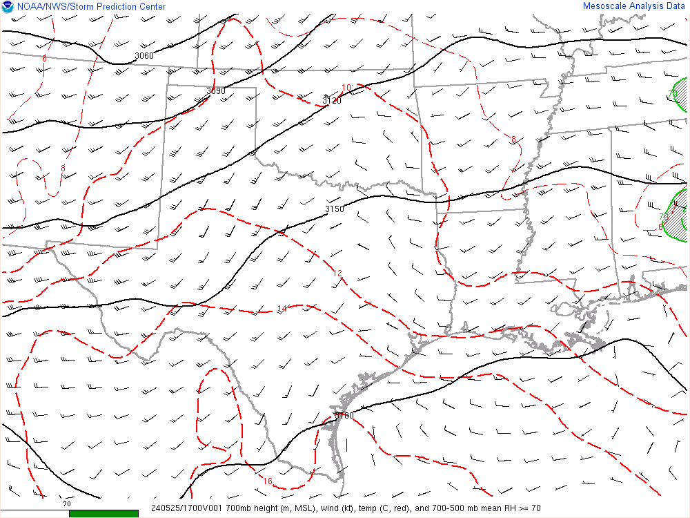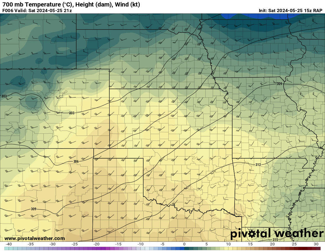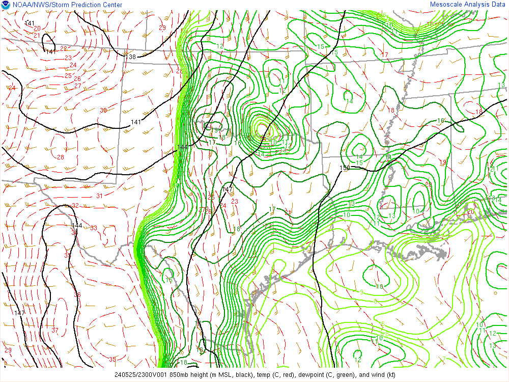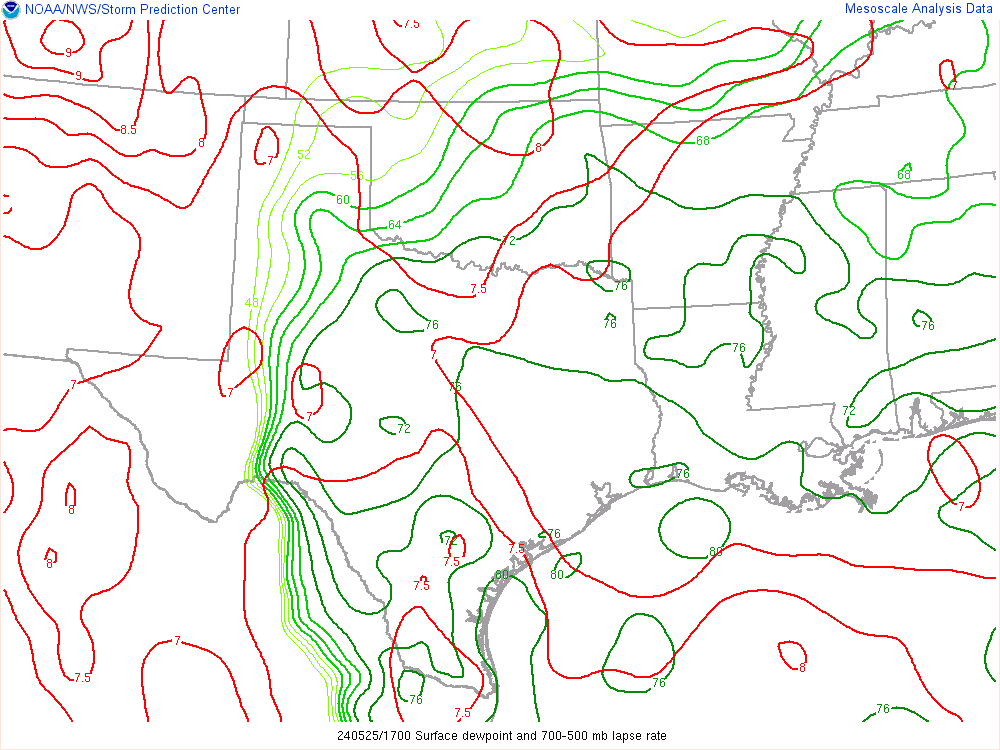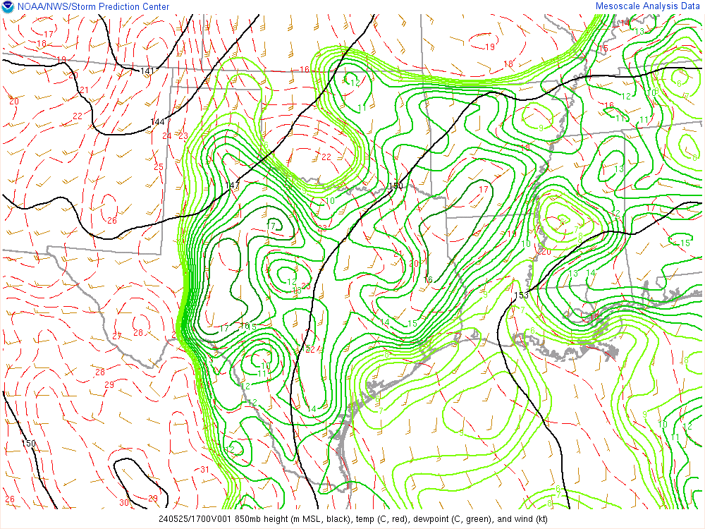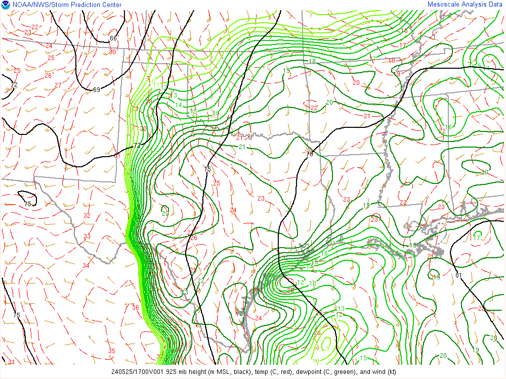 As you can see, moisture had moved further north into Oklahoma with 70 degree dewpoints well in place across Southern Oklahoma. It also seemed like Kansas play would not materialize as expected.