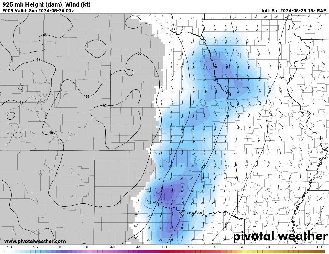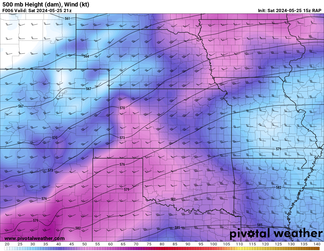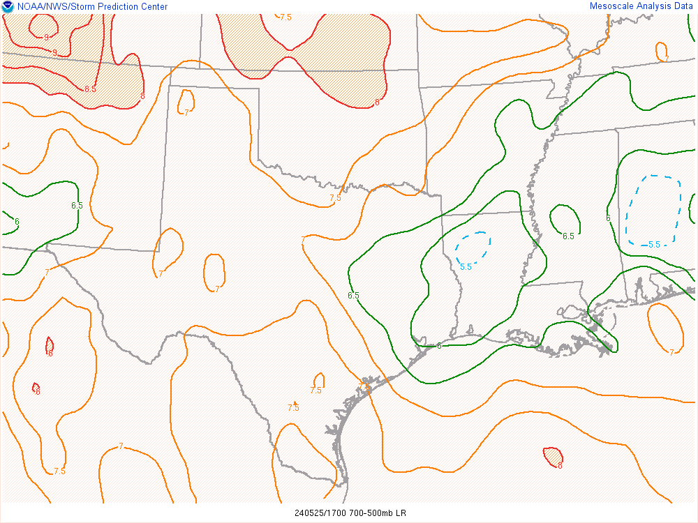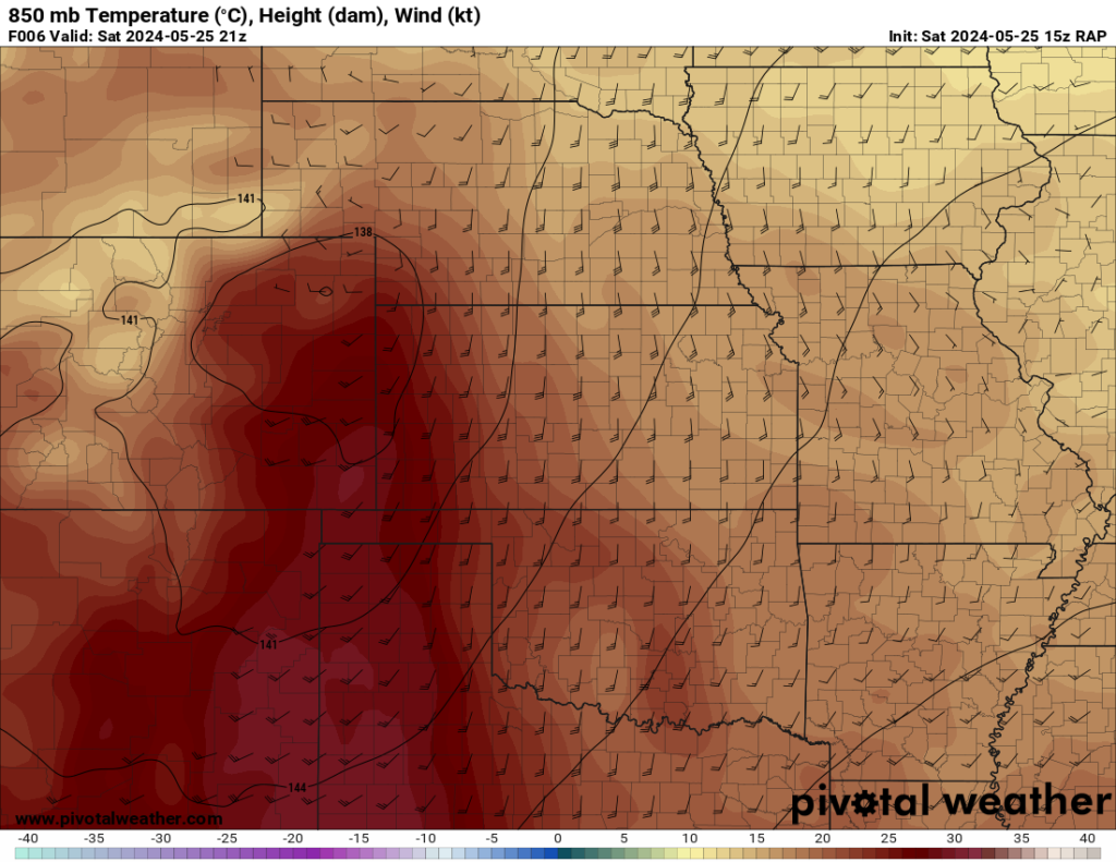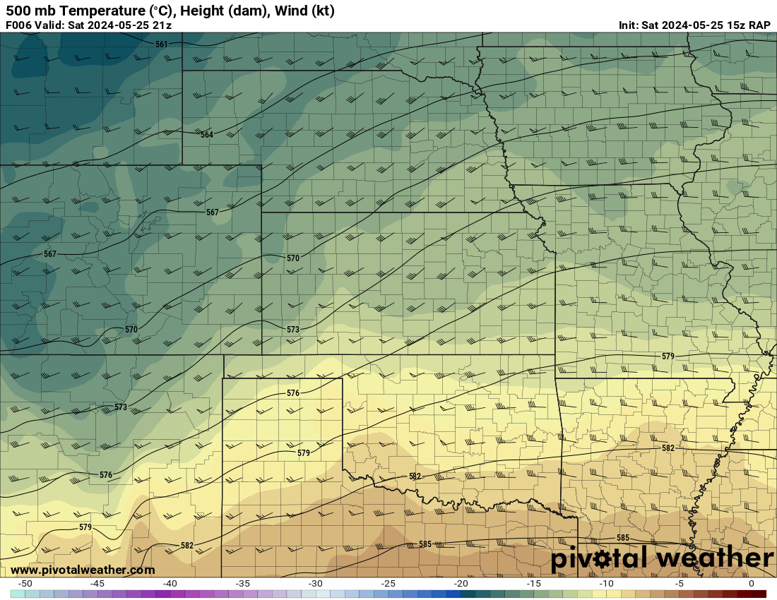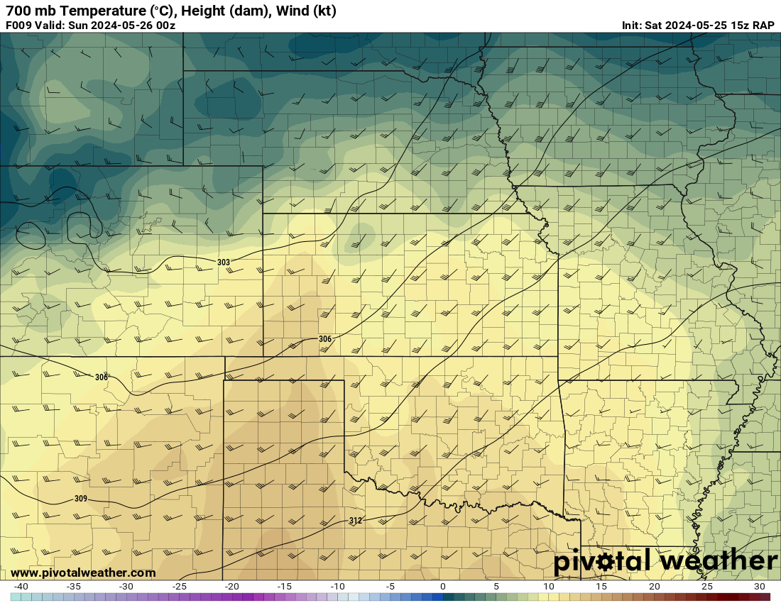 As you can see, moisture had moved further north into Oklahoma with 70 degree dewpoints well in place across Southern Oklahoma. It also seemed like Kansas play would not materialize as expected.
