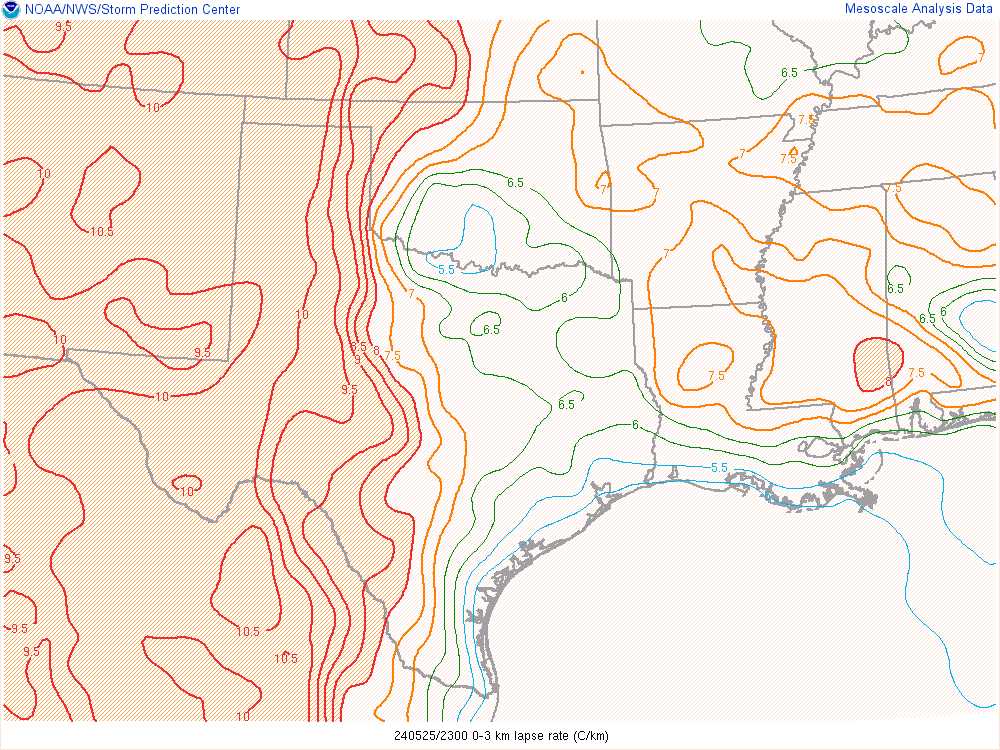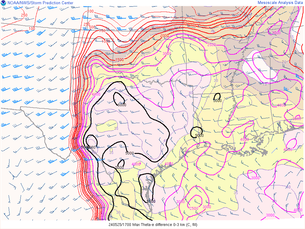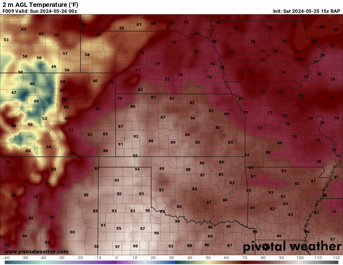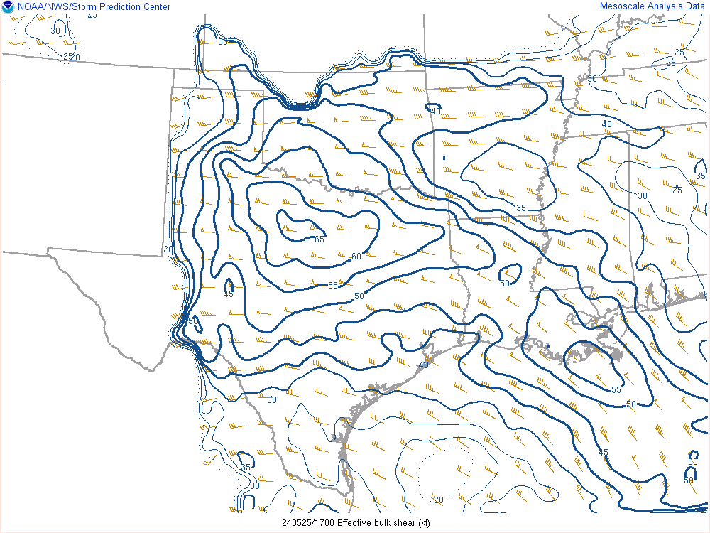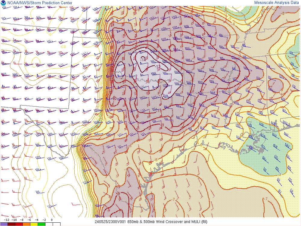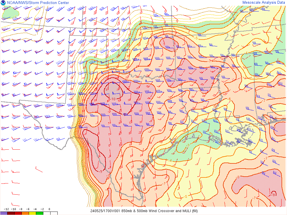 This would fail to materialize in spectacular fashion. A left split on an early storm would send a stabilizing wave across Oklahoma, leaving us chasers frustrated.