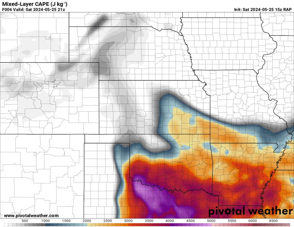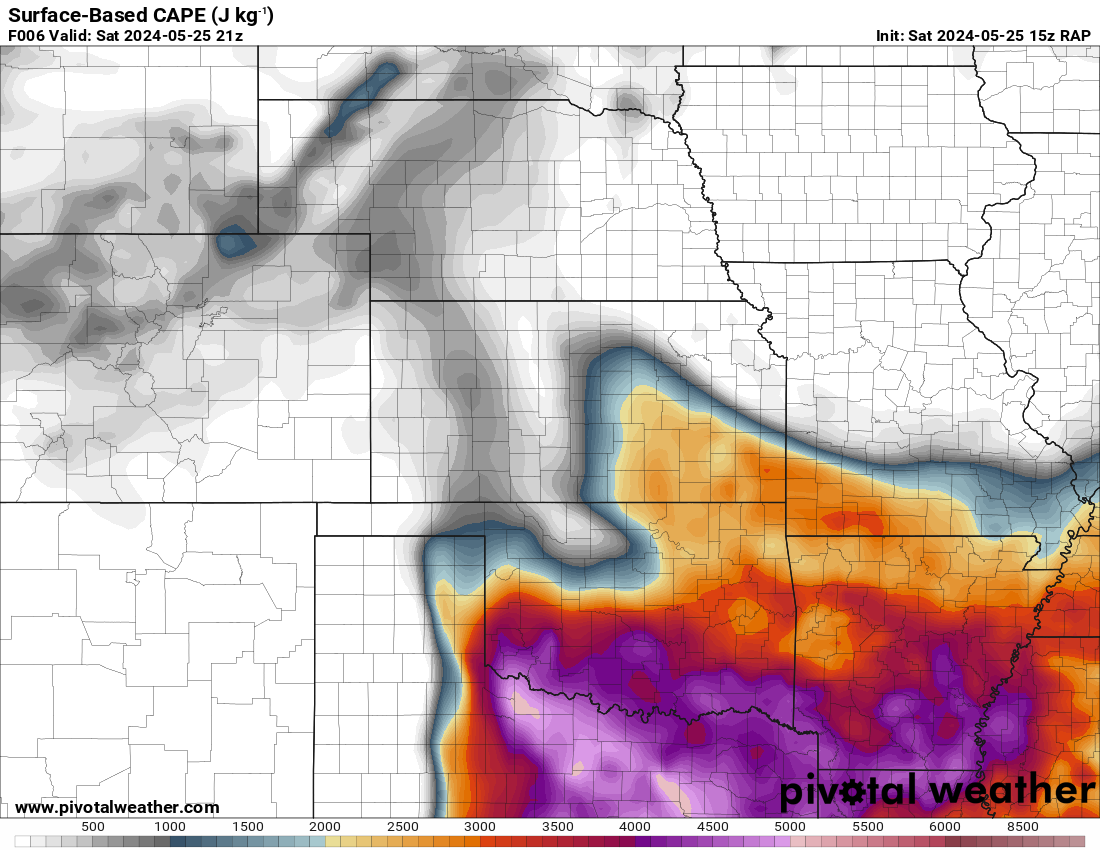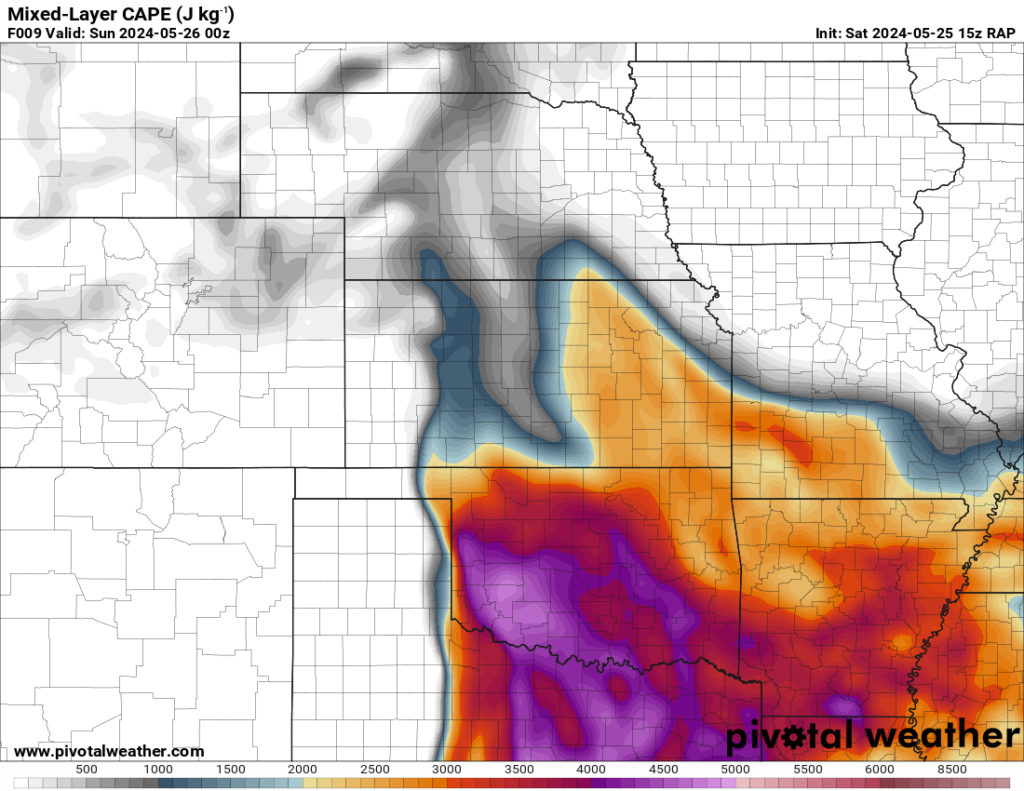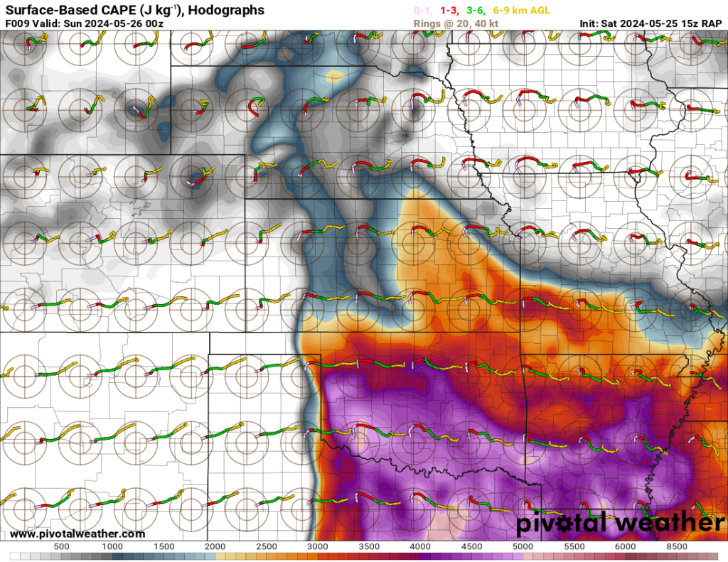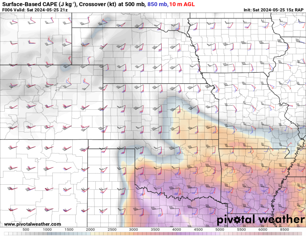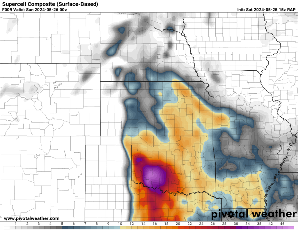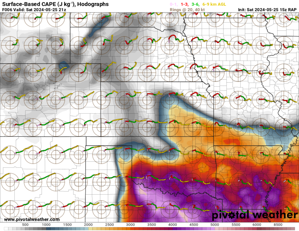 The end result will be a rare combination of instability and shear across the Moderate Risk area, with potential for particularly strong tornadoes, wind, and extreme hail.