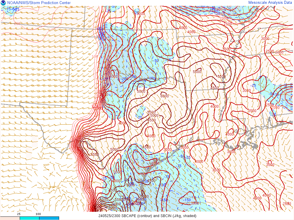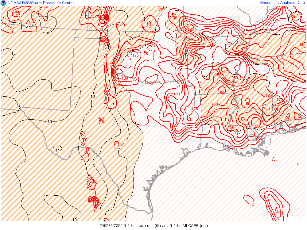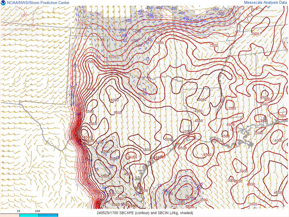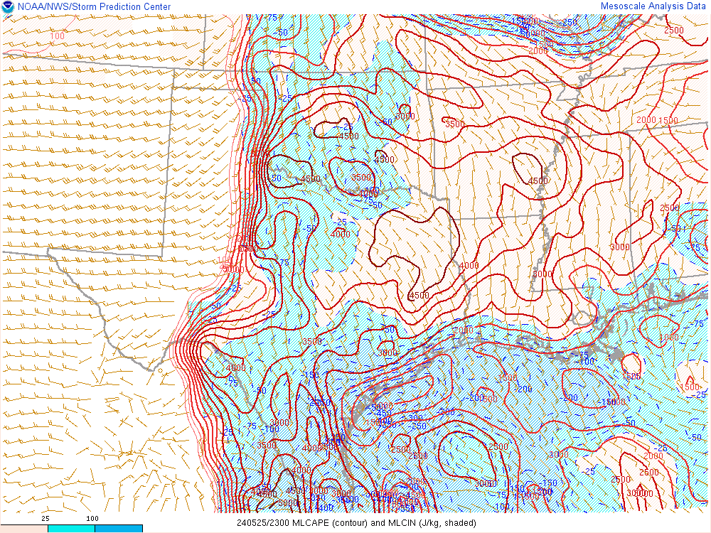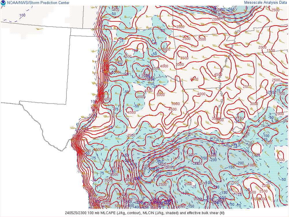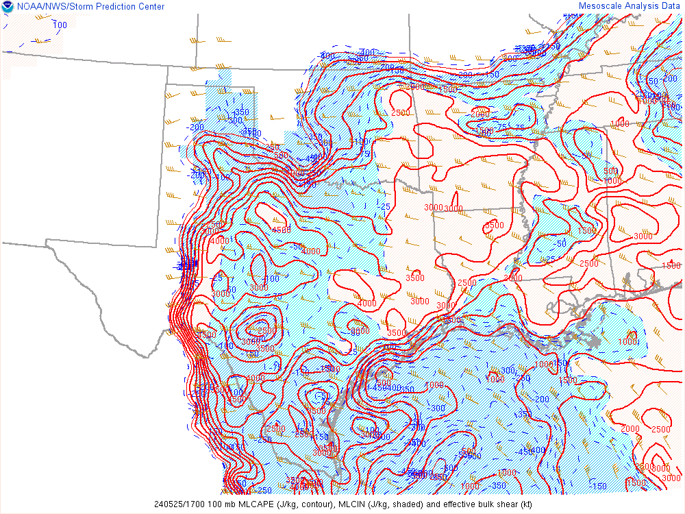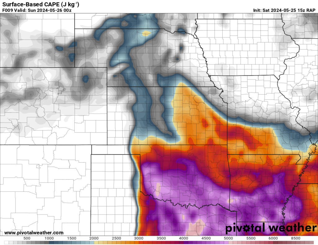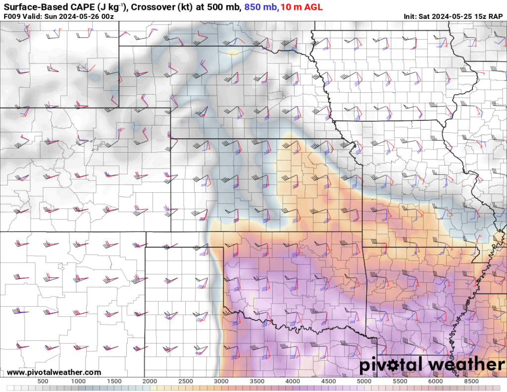 The end result will be a rare combination of instability and shear across the Moderate Risk area, with potential for particularly strong tornadoes, wind, and extreme hail.