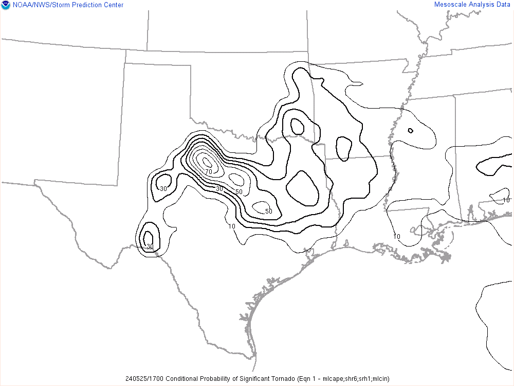 This would be another hyped Oklahoma day with a 15% hatched chance of tornadoes according to SPC. Some very ominous wording in the outlooks