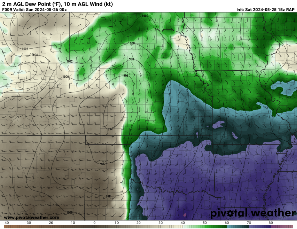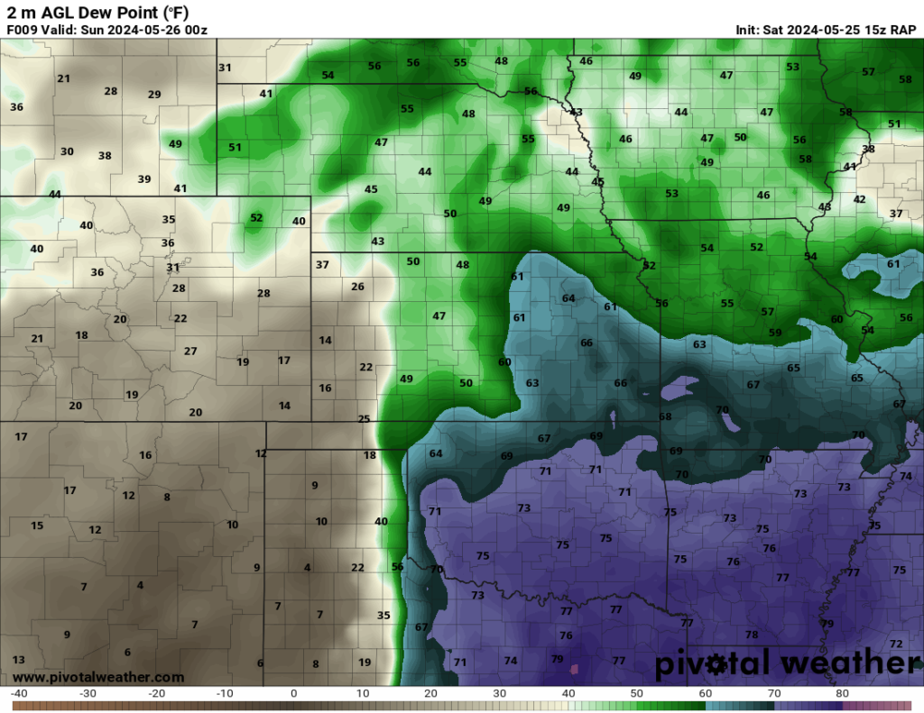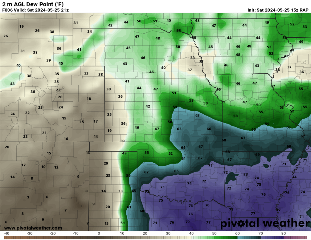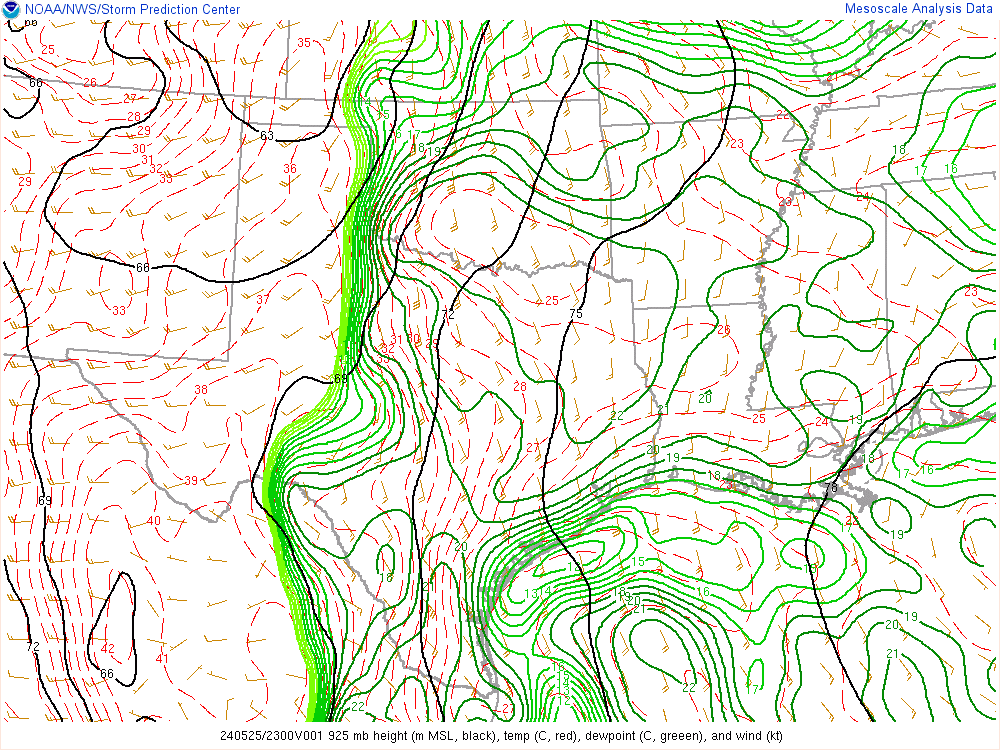 Mid 60 to 70 degree dewpoints were in place over the area in question the morning of the 25th. A warm front was rapidly moving northward as a low deepened in Colorado.