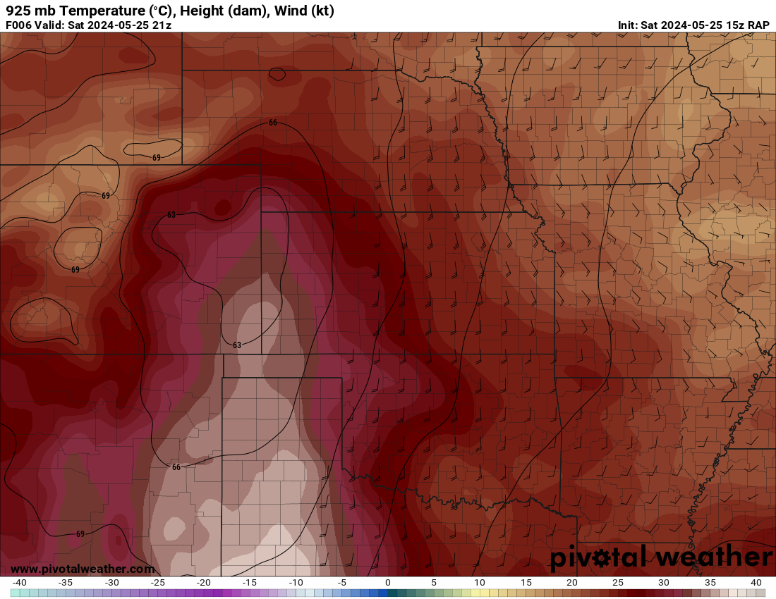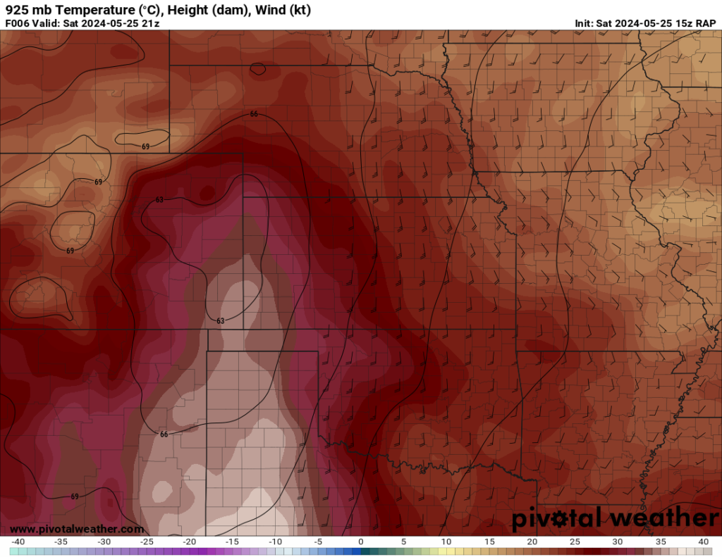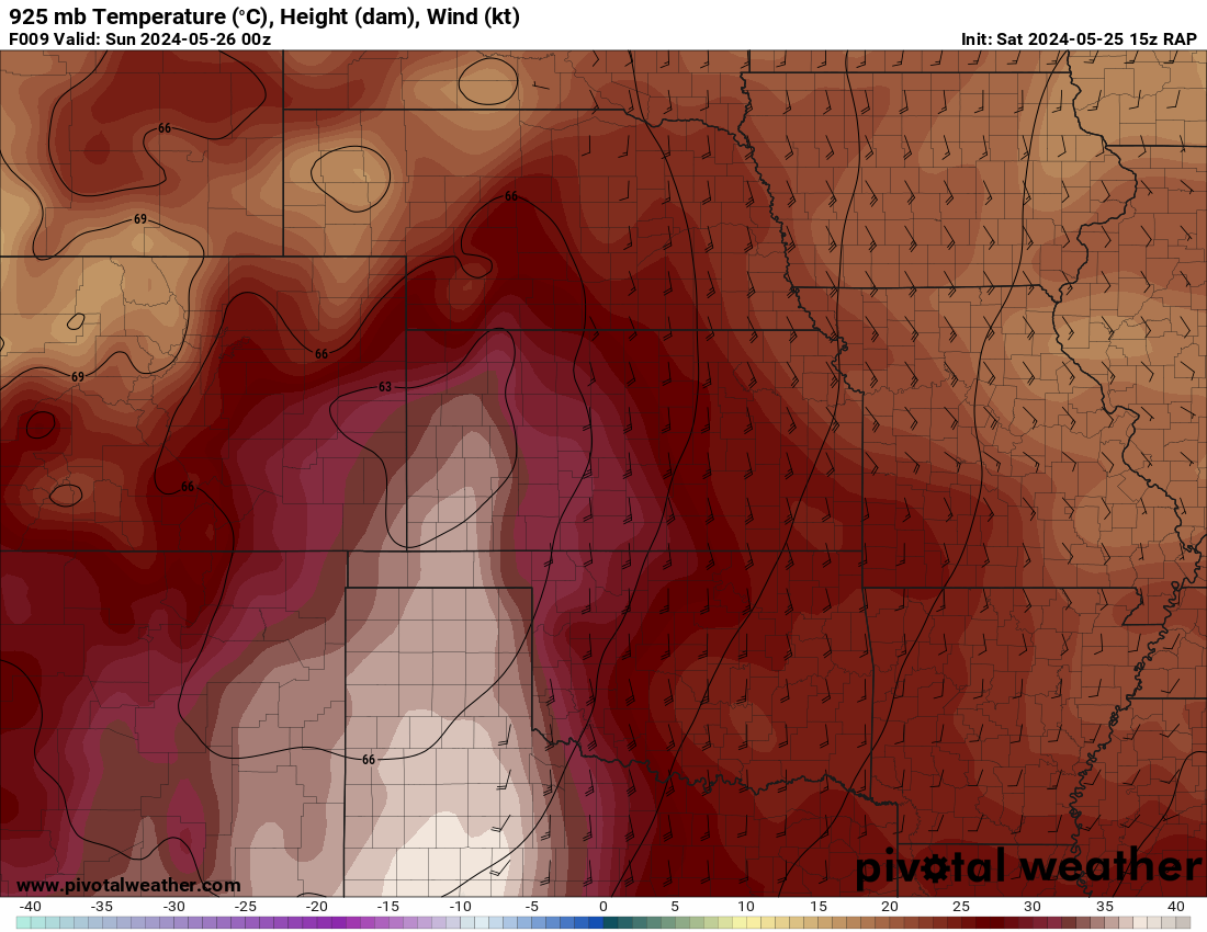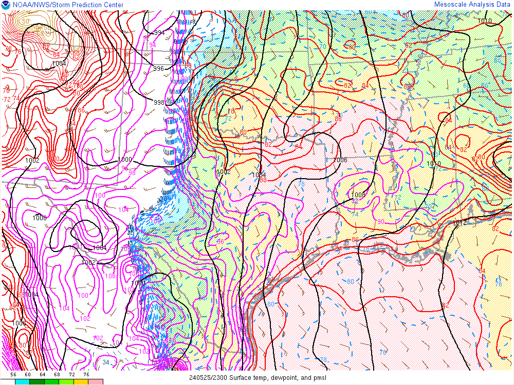 Mid 60 to 70 degree dewpoints were in place over the area in question the morning of the 25th. A warm front was rapidly moving northward as a low deepened in Colorado.
