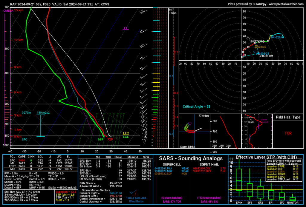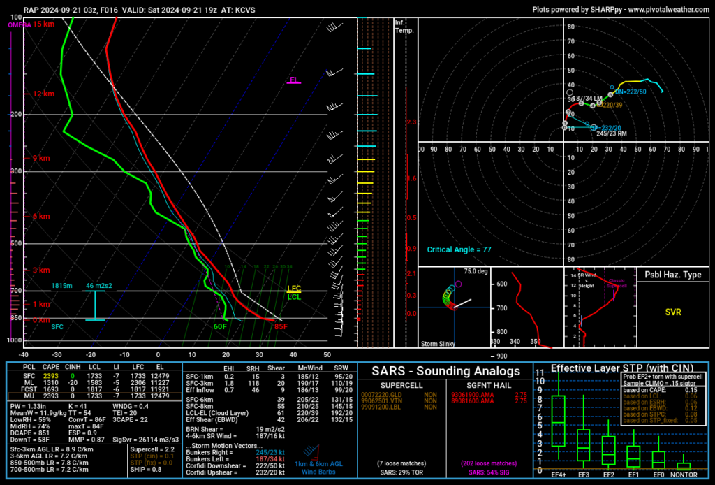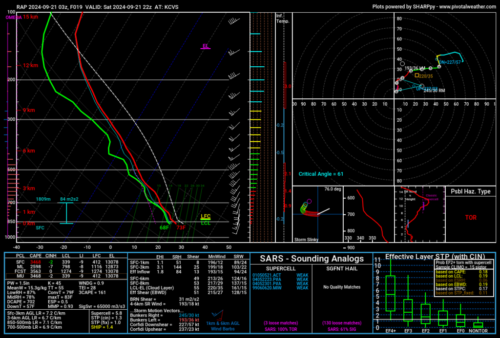 The main focus was an area near Clovis, New Mexico. It appeared to be the sweet spot where tornadoes may form in the afternoon. Here’s some forecasted soundings from the RAP