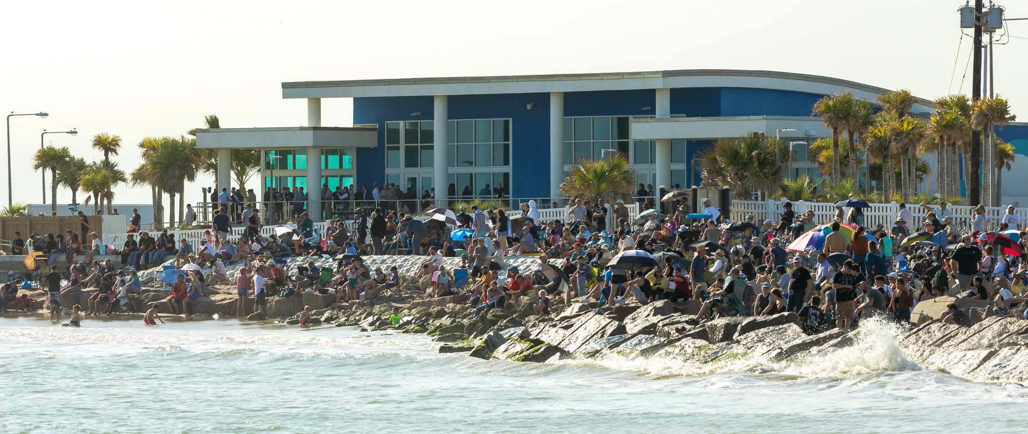 As you can imagine, the crowds were big. Most people lined the south end of Isla Blanca park near the Jesus Christ of the Fisherman statue.